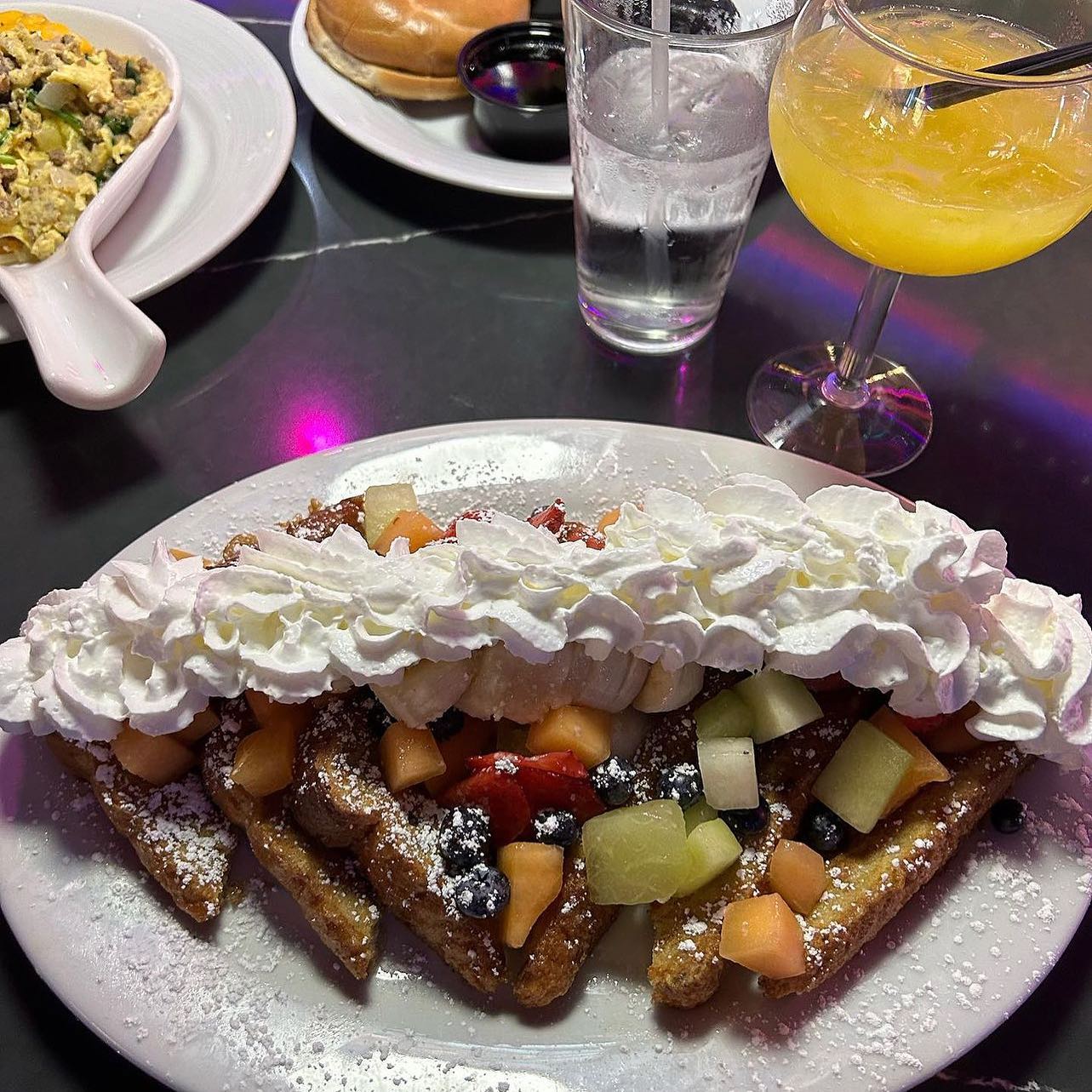 If you’re a night owl craving a tasty breakfast, the Peppermill Las Vegas is your ultimate spot. Voted Best of Las Vegas more than once, this restaurant on the Las Vegas Strip serves breakfast in a retro charm and neon-lit ambiance. The breakfast menu has all the classics and serves gigantic portions.