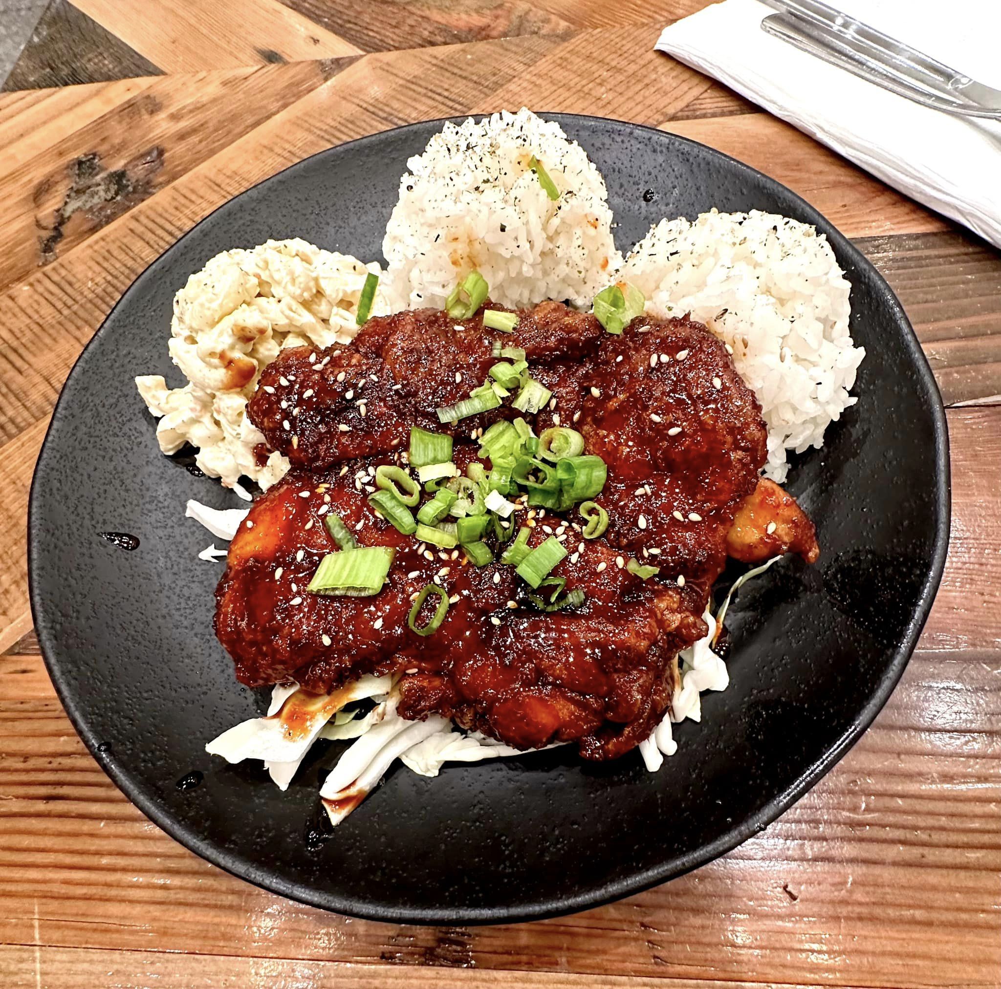 Must-try meals are the Ai Pono originals like Da Mento "Fuckin" Bento. It includes guava chili pepper chicken, mac salad rice, lollipop shrimp, hot dog, spam mahi mahi, fish jun, and beef. And, if you have lunch earlier in the day, ask for the curry oxtail soup special that sells out by 6 pm daily.