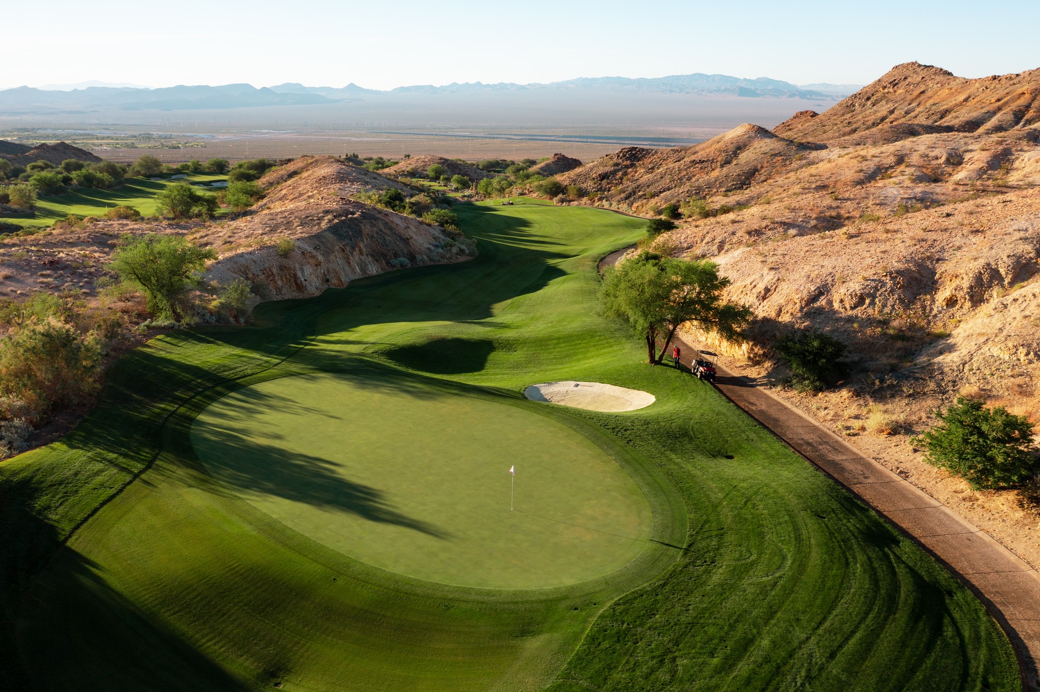 Cascata is undeniably a great engineering feat in golf; it climbs up and down a steep, with a rocky mountain hillside. The course exhibits the edges of Nevada while exposing the barren areas similar to Wolf Creek in Mesquite. However, it features willows, ironwoods, planted date palms, babbling brooks, and turfed areas. The 18-hole facility ranked in the top five courses in the state from 2011 to 2014.