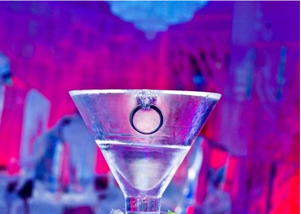 You can wow your boo with an engagement ring frozen into a martini glass made of ice.
