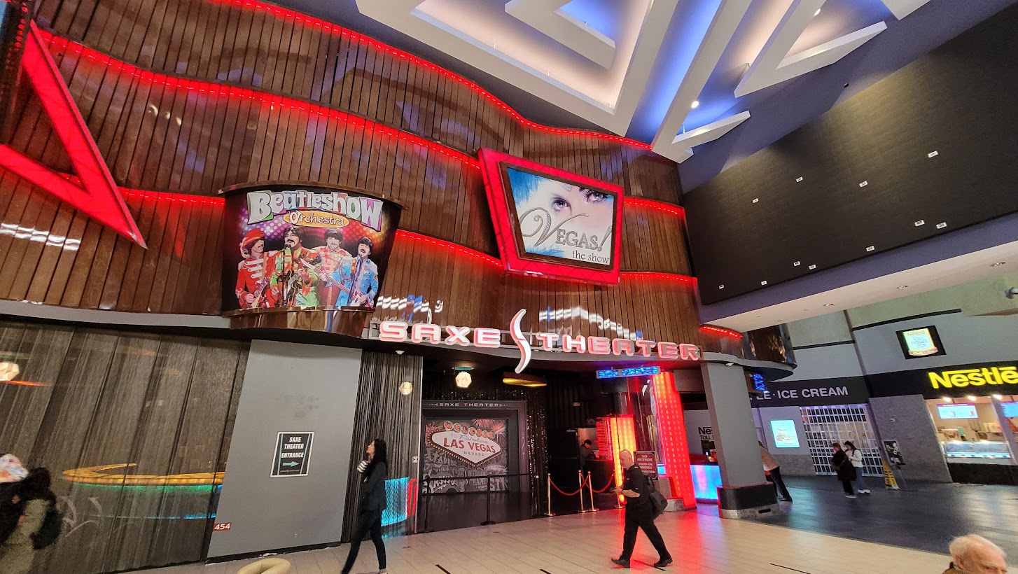 SAXE THEATER is much more modern and spacious. It's the permanent home for critically acclaimed VEGAS! The Show and has a pretty kick-ass lounge. Magician Nathan Burton recently moved there from the V, but others like BEATLESHOW have yet to return. I haven't visited the Saxe post-pandemic, but hope it hasn't suffered the same sad fate as the V.