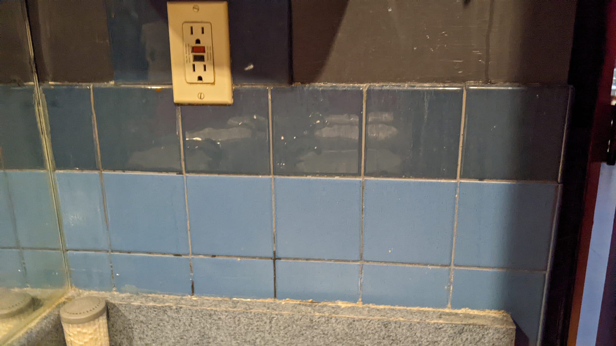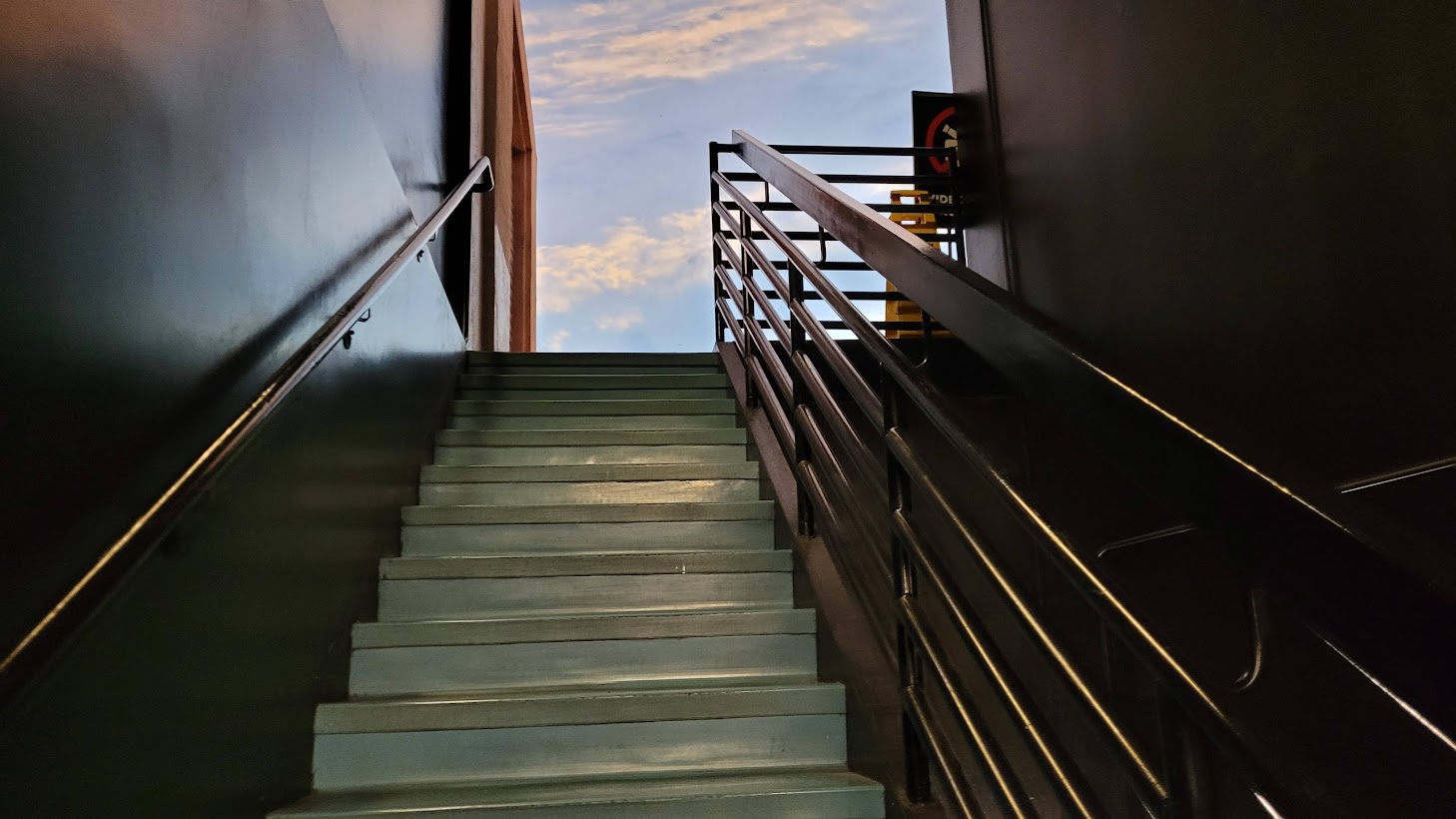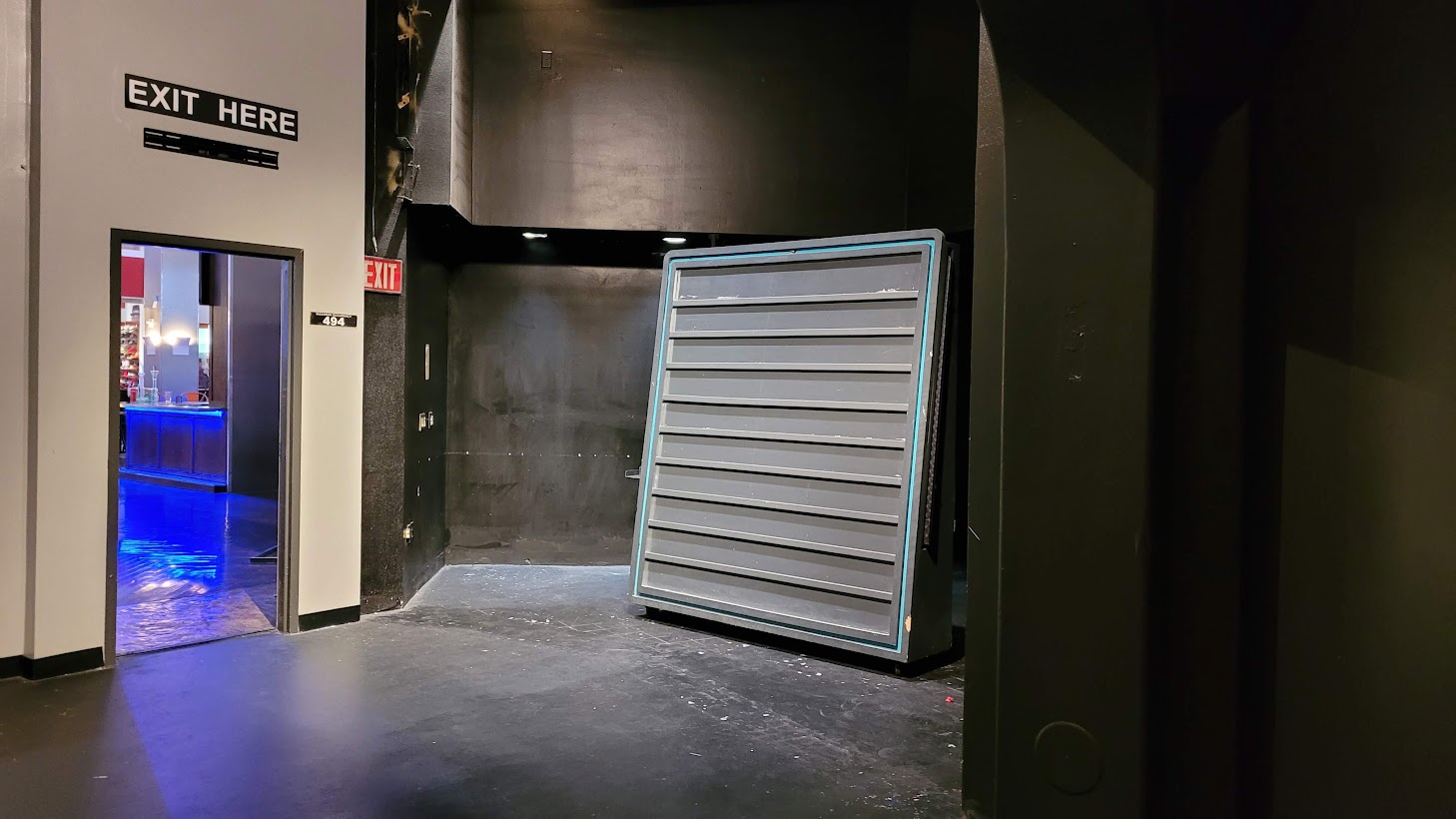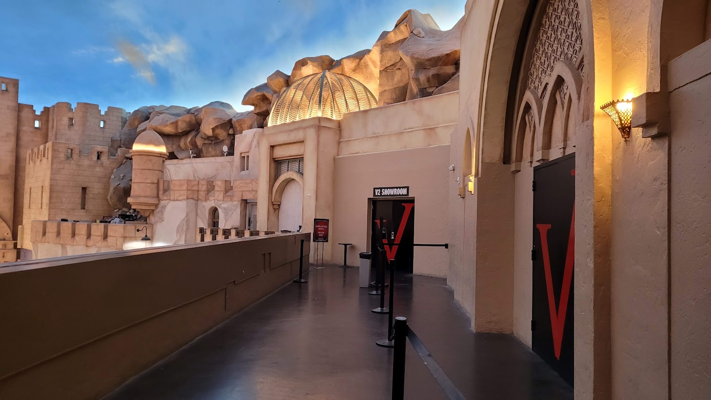Once you arrive on the upper level, you'll take a right to access V2 auditorium or left for the V3. Along the way, you'll see exposed wiring, holes in the walls, and of course, the blocked-off VERANDA BAR.