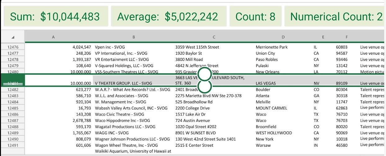 A previous occupant of V THEATER told VEGAS 411 that Saxe also collected a no-payback-required $10 million SVOG grant. This entity provided us with documentation to prove that V THEATERS received a $10 million government handout during the pandemic. So why does it receive the maintenance of a dive bar restroom?