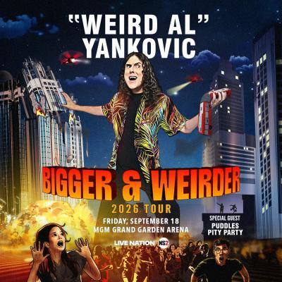 Following the massive success of his 2025 tour, the legendary “Weird Al” Yankovic is gearing up for another outrageous run as he brings the next chapter of his BIGGER & WEIRDER Tour to the MGM Grand Garden Arena on Friday, Sept. 18, 2026. Known for turning concerts into full-blown comedy-rock spectacles, Yankovic’s 2026 show promises even more over-the-top energy with a giant video wall, rapid-fire costume changes, and an eight-piece ensemble featuring his original longtime band. Fans can expect a mix of his most iconic parody hits—like “White & Nerdy,” “Amish Paradise,” and “Smells Like Nirvana”—alongside deep-cut favorites that hardcore followers love. Tickets go on sale Friday, Nov. 21 at 10 a.m. PT at AXS.com, and this show is expected to draw fans across multiple generations who’ve grown up with Yankovic’s unmistakable blend of humor and musical talent.