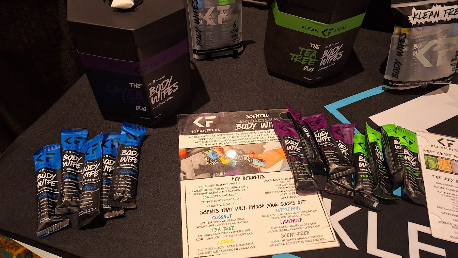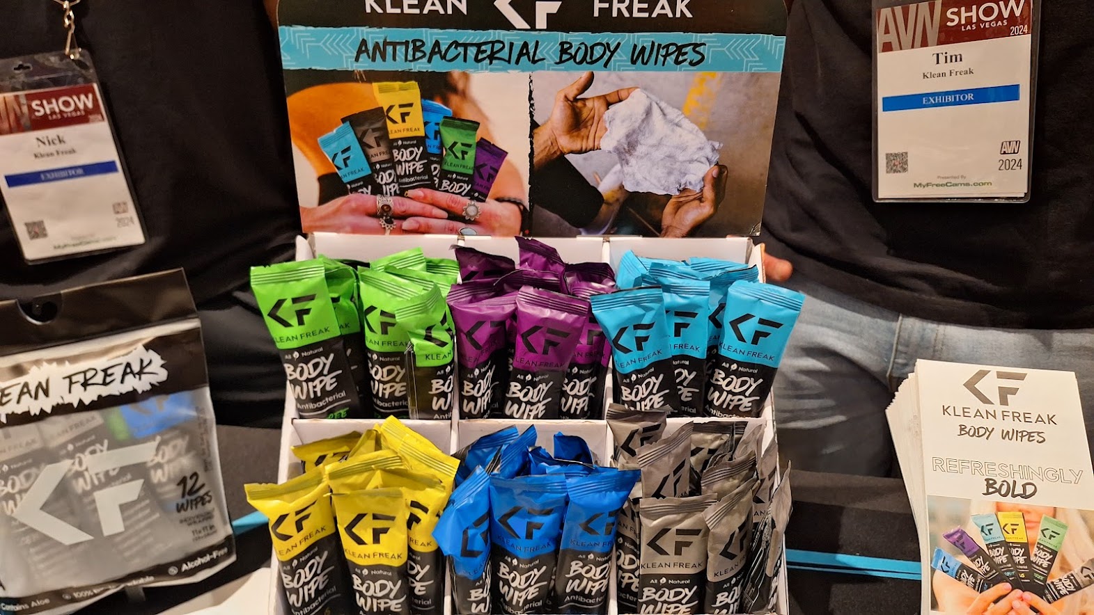 Big hitters in this industry include ANEROS, DEMON KAT, BATHMATE, LOVENSE, and HONEY Play Box. Our first stop was KLEAN FREAK, a line of personal hygiene wipes. Described as "a shower in your pocket", KLEAN FREAK products are handy for post-workout refreshing and afternoon liaison bounceback. They are manufactured from sustainable materials, are harsh on bacteria, kind to the skin, and come in various natural scents.