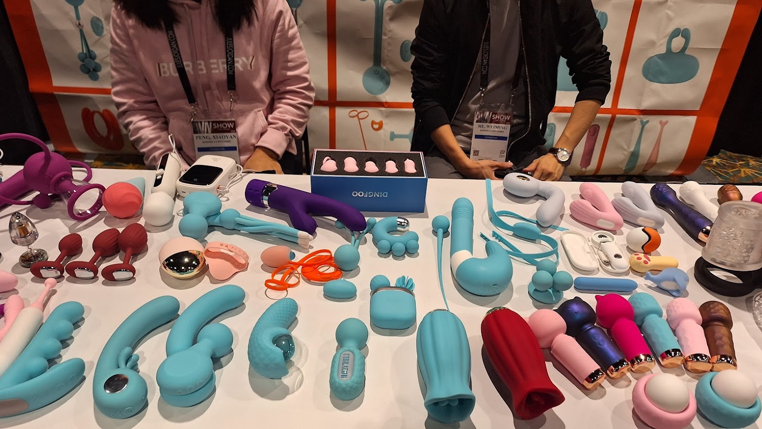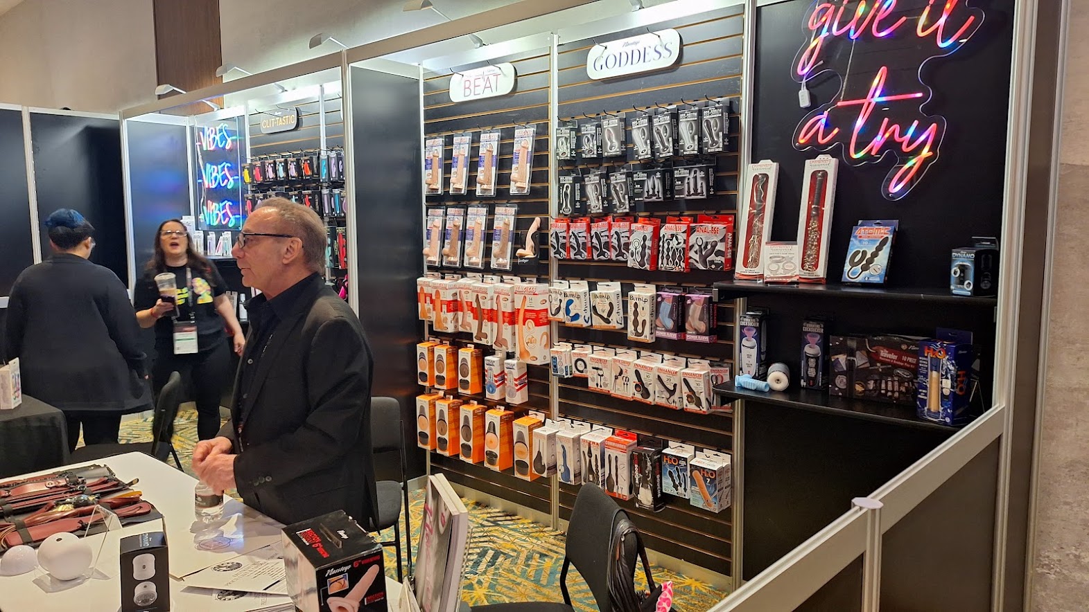 Heading from booth to booth, we encountered lifelike artificial partners, devices for couples, massage gels, intimate wear, bondage accessories, lubricants, and even "love gummies". One vendor pointed us in the direction of Elliot Schwartz, President of NASSTOYS. This New York-based firm has been around for forty years and produces over 1,200 items.
