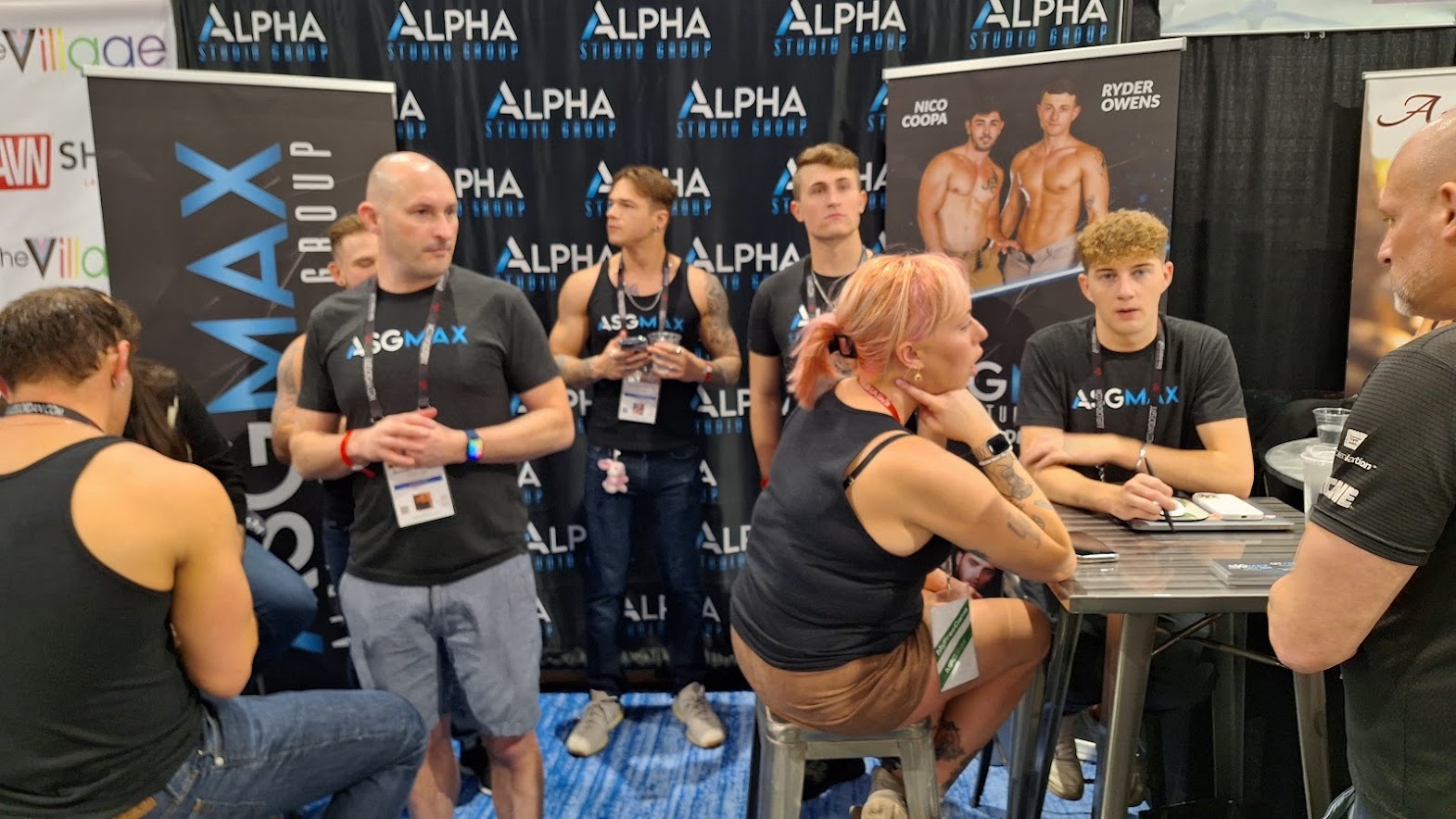 As mentioned in part one, a section of the AVN Adult Expo was designed to appeal primarily to the LGBTQ demographic. Designated as "The Village", this corridor featured gay porn stars, products, and promotions. Several local dancers were on hand as go-go guys, including performers from Chippendales and Cirque du Soleil.