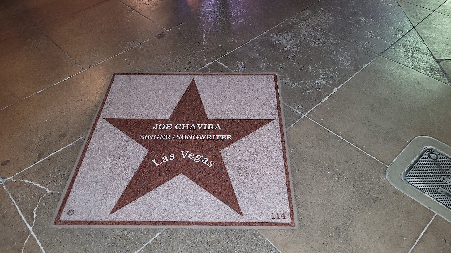 "All of sudden Joe enters the bar holding a frame (about the size of a gold record that I am sure Joe will never get). He goes right up to the piano player...while the other was taking his turn. He starts talking and shows him the frame. It’s his Las Vegas Walk of Fame star! I guess he just carries it around?"