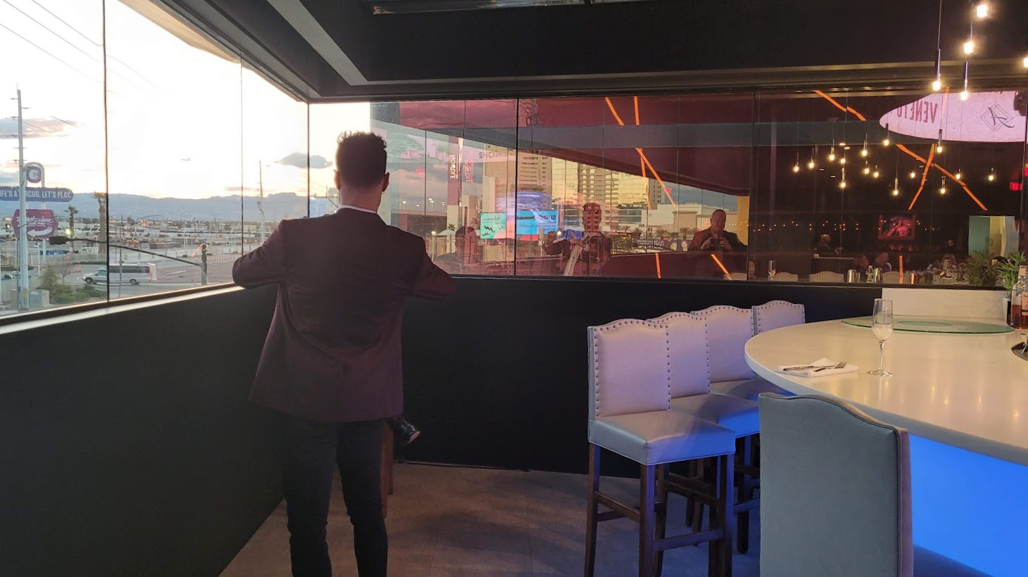 In the meantime, Chef Joel has an opportunity to present a myriad of dishes within the framework of periodic Wine-Pairing Dinners. VEGAS 411 attended the most recent, which took place March 23rd within AHERN LIVE. This is the hotel's showroom lounge, which provides beautiful sunset views through panoramic windows.