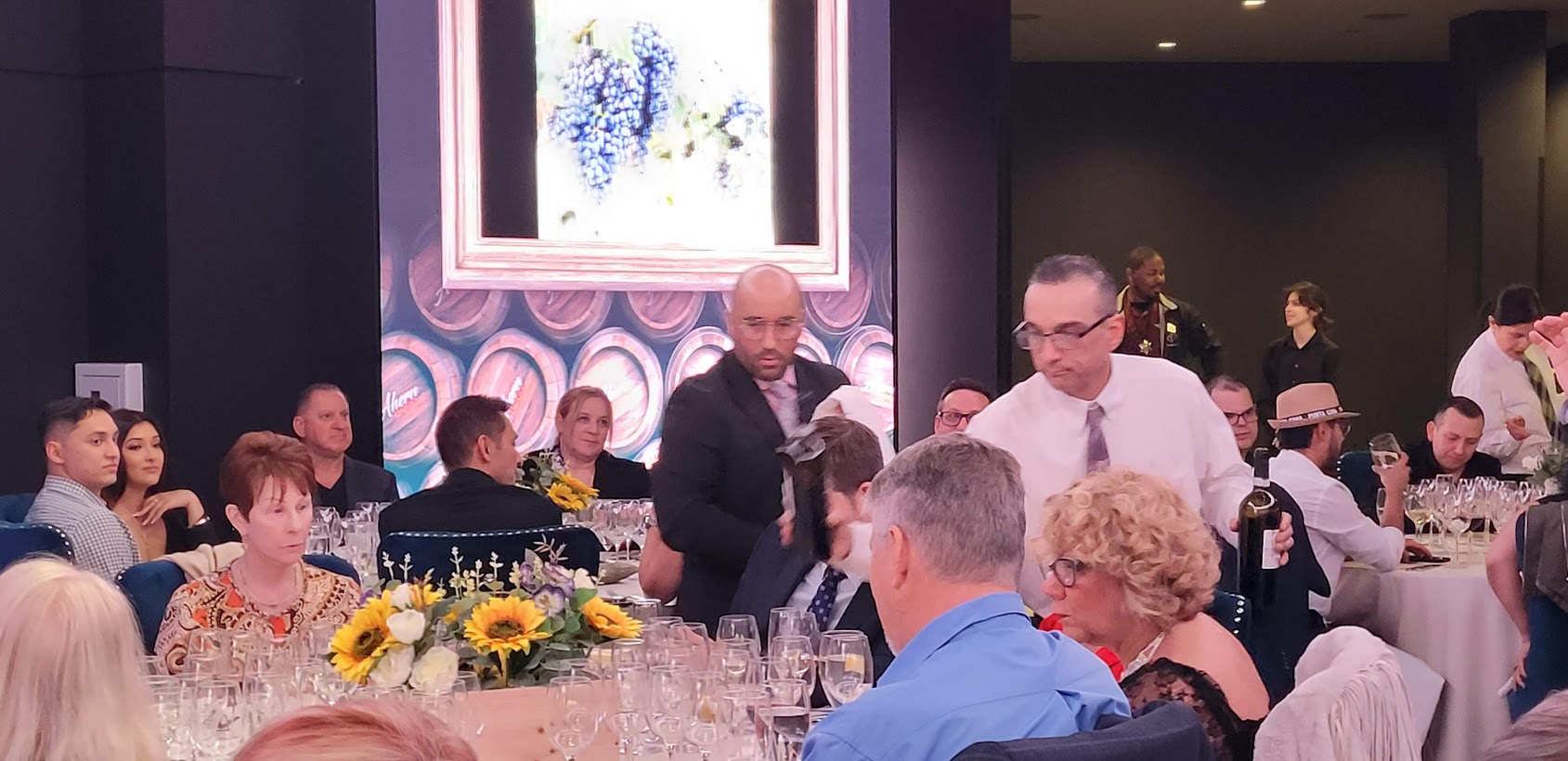 Unfortunately, this writer had to dash to another event in the Arts District and missed out on dessert. It was a trio of Chocolate Truffles...dark chocolate orange, milk chocolate caramel, and white chocolate raspberry. My guest told me that they were amazing. An entertainer in multiple Vegas shows, he remained for post-dinner dancing, then the event came to a successful close.