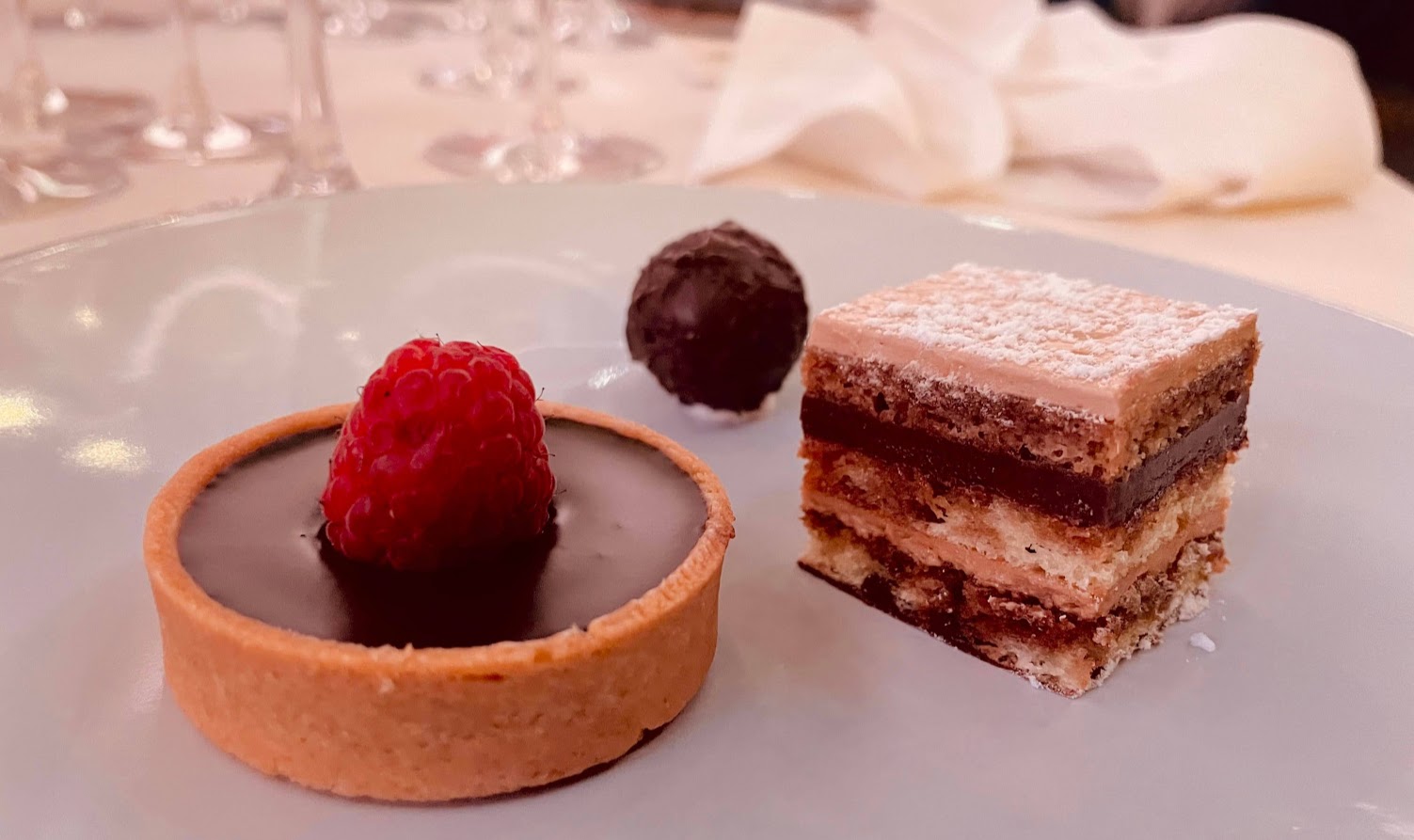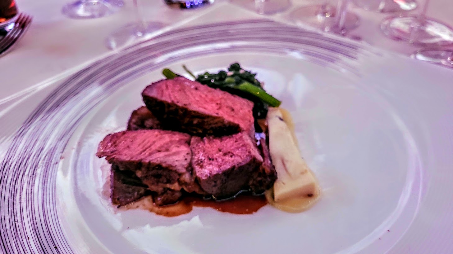Next was a beautiful 30-day Dry-Aged Prime Beef, accompanied by a slice of gorgonzola piccante, sauteed rapini with garlic, and a red wine bordelaise. A glorious Case Bianche Cabernet Sauvignon brought the course to a close.