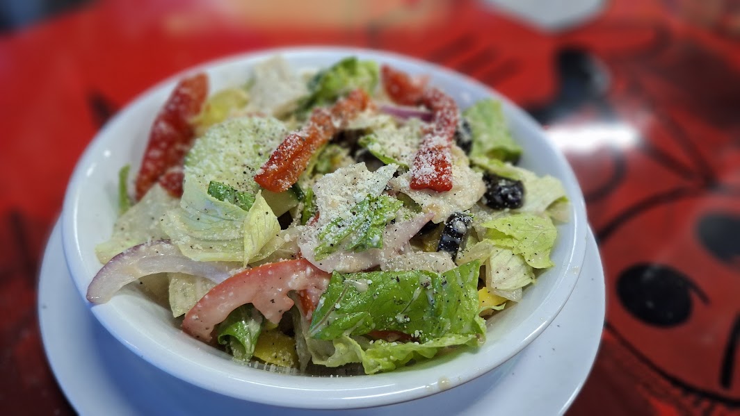As mentioned, soups are prepared in-house. Selections are Minestrone, Pasta e Fagioli, and Chicken Noodle. The list of salads includes an Antipasta, House, Caesar, Mediterranean, Caprese, and Southwest BBQ Chicken Salad.