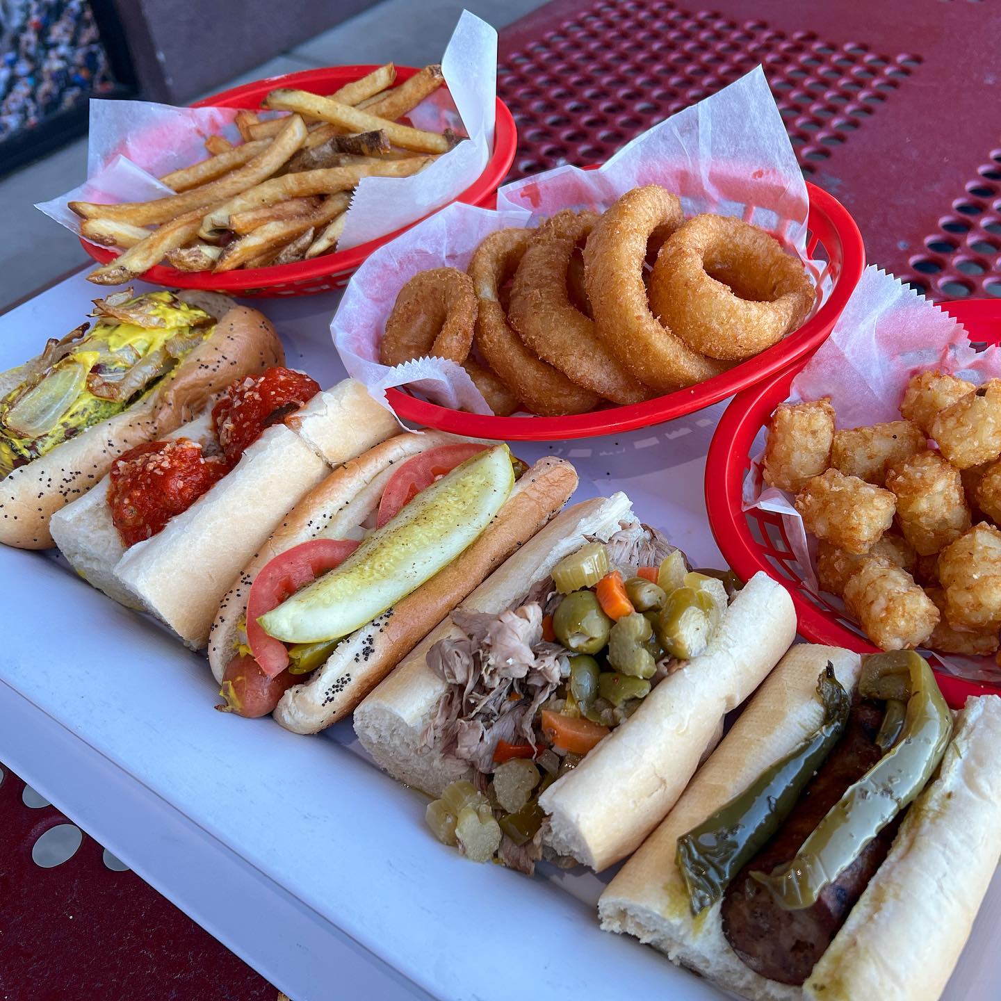 Are you on the go and wanting a quick sandwich? There are plenty of choices, like the Grilled Polish (below), Beef and Sausage, Italian Sub, Meatball, Chicken Parmigiana, Grilled Chicken, Corned Beef, and Reuben. The Chicago-style Vienna Hot Dog is topped with onions, relish, mustard, tomatoes, sport peppers, celery salt, and a pickle spear. It's served on a poppyseed bun and comes with searing hot crinkle-cut fries.