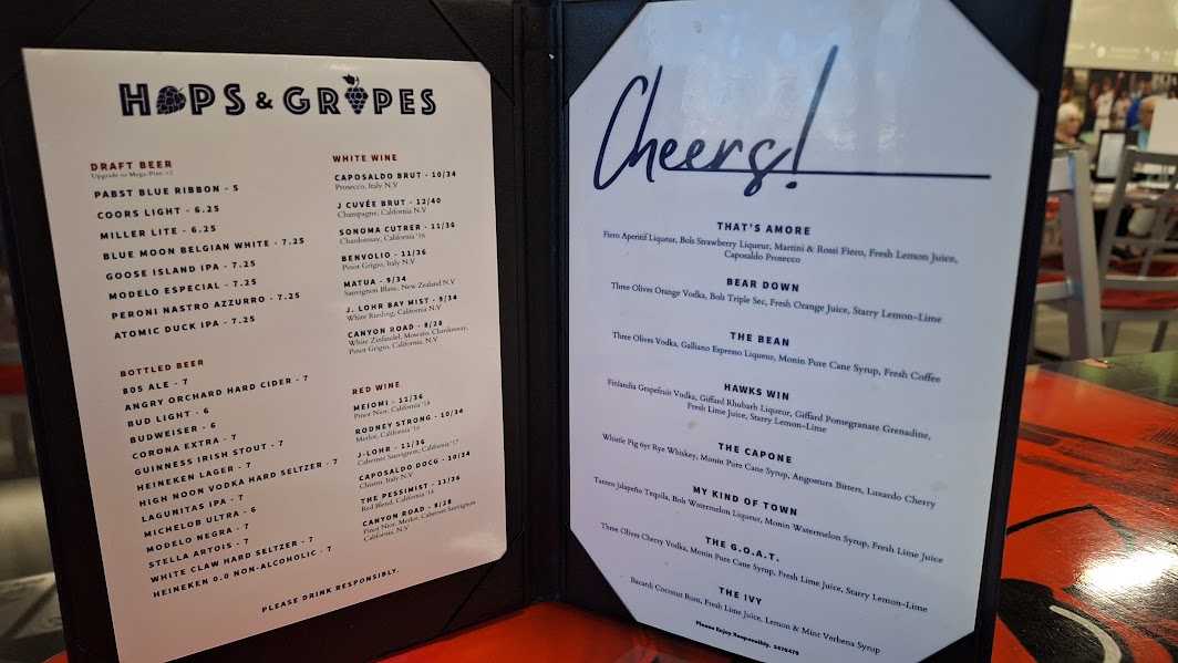 Both locations open their kitchens daily at 11 am. A special lunchtime menu features food combos at reduced prices. Doors open for Sunday football at 10 am with bar service only for the first hour. Closing time is 9 pm on weekdays, 10 pm on Fridays and Saturdays.