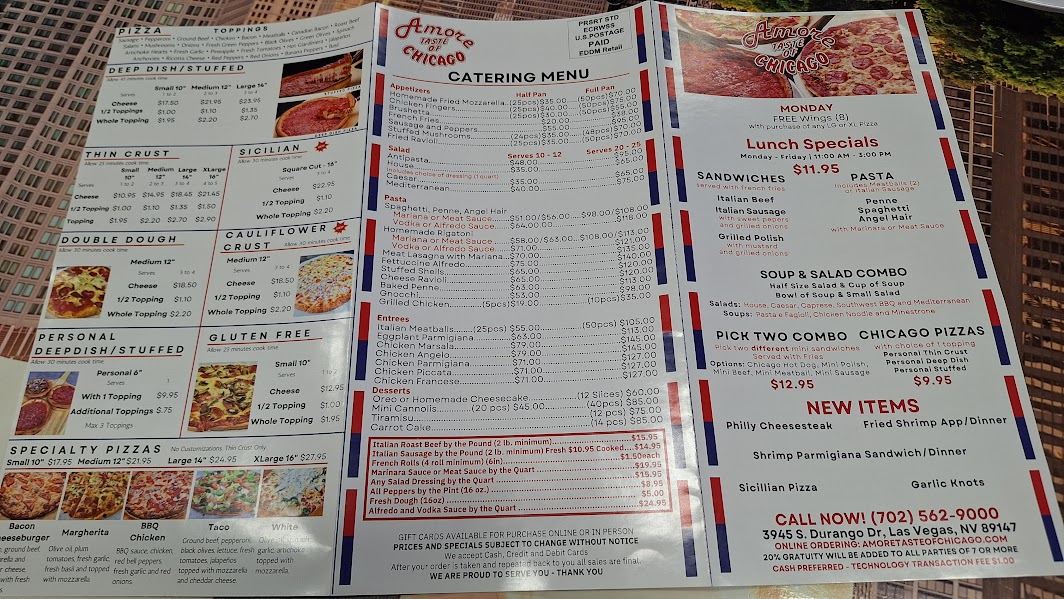 The next time you're craving some Windy City cuisine, head to AMORE Taste of Chicago. You'll be more than satisfied—you'll feel right at home. The Henderson location is at 4330 Sunset Road. Call 702-463-9163. The Durango/West Side restaurant is at 2945 S. Durango Drive. Phone 702-562-9000.