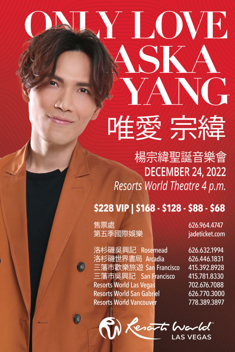 Since obtaining his Master's Degree in Sports Psychology, Aska Yang has put his musical career on hold a number of times. Like American self-proclaimed "Queen" Madonna, Yang has gained a reputation for being difficult and diva-like, That's actually limited the number of live shows on his scorecard, making the December 24th appearance at Resorts World a rare treat. Showtime for the ASKA YANG - ONLY LOVE tour is 4 pm and tickets can be ordered here.