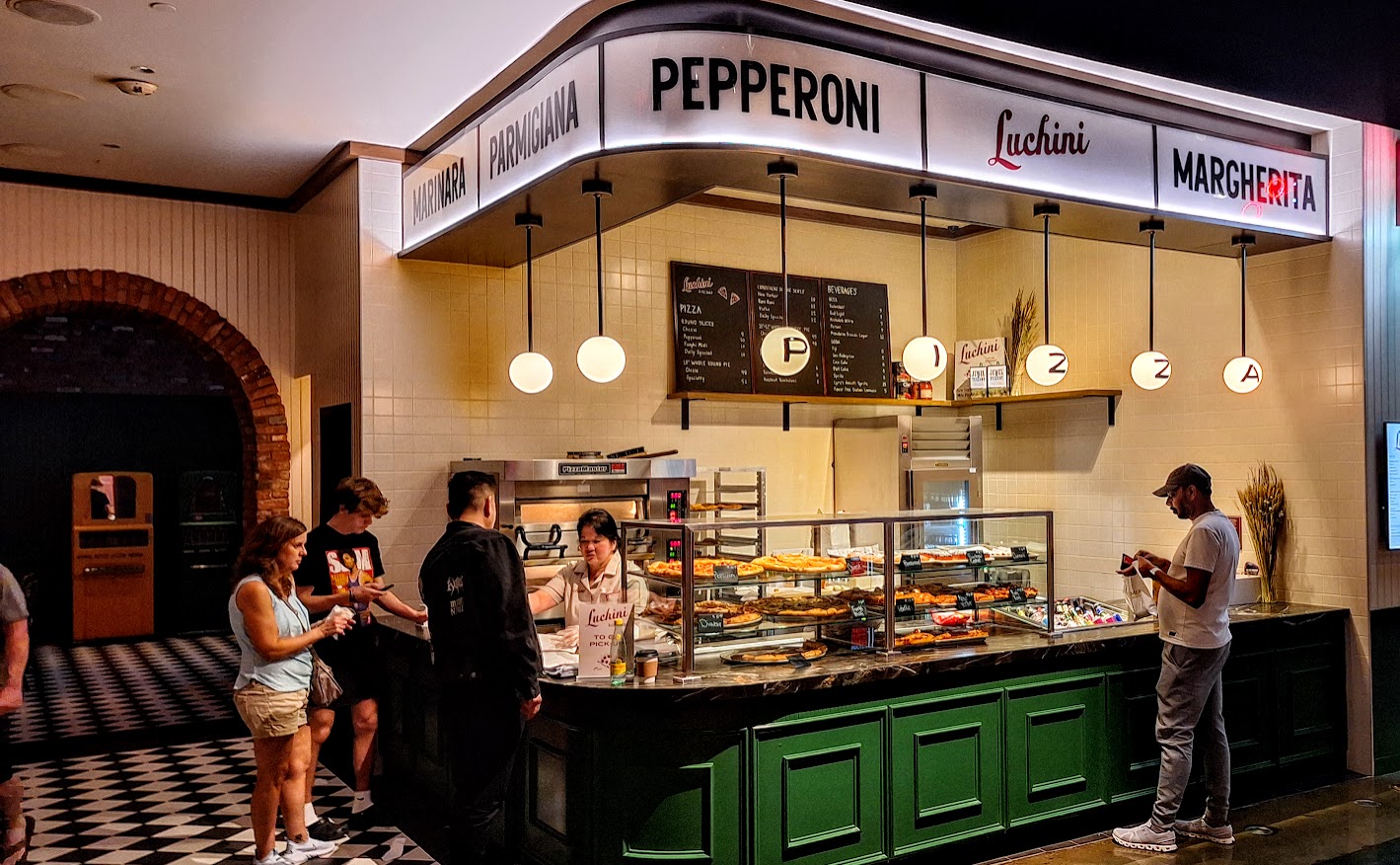LUCHINI serves up pizza just the way you like it, from 12- and 18-inch whole pizzas to round and square slices. There's even a massive 18" x 12" Consigliere Pizza in either cheese or specialty.