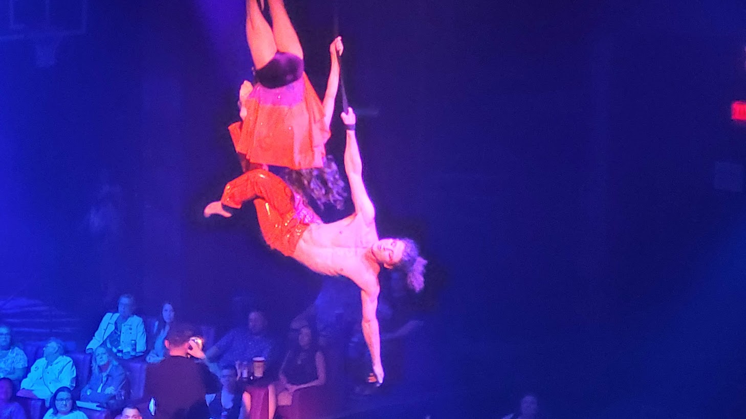 The cast of characters, singers, musicians, athletes, and specialty acts is uniformly excellent. Unlike most shows created by the Montreal troupe, MAD APPLE features a rotating roster of artists and acts that make every performance unique. The current line-up includes an outstanding team of world-class aerialists, hand-balancing musclemen, the gasp-inducing "Wheel of Death", and a super-cool team of basketball acrobats known as "The Game".