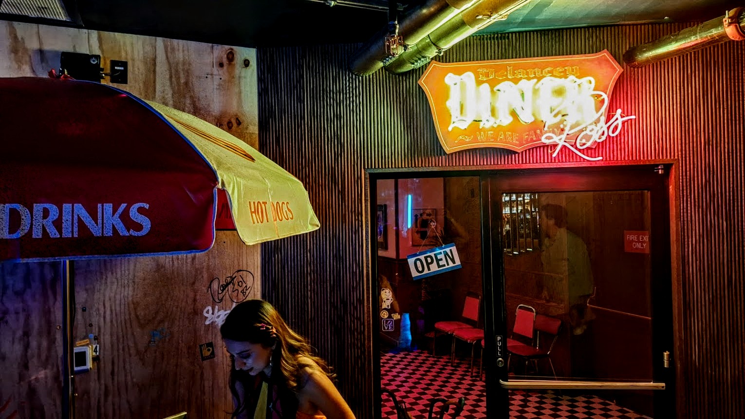 Located on one side of GLITTERLOFT at Linq Hotel, the Diner Ross entry resembles a 24-hour eatery you'd wander into after late-night partying. A hot dog cart serves as the hostess's desk, enhancing the illusion of a big-city side street. Step inside, and the disco era explodes all around you...