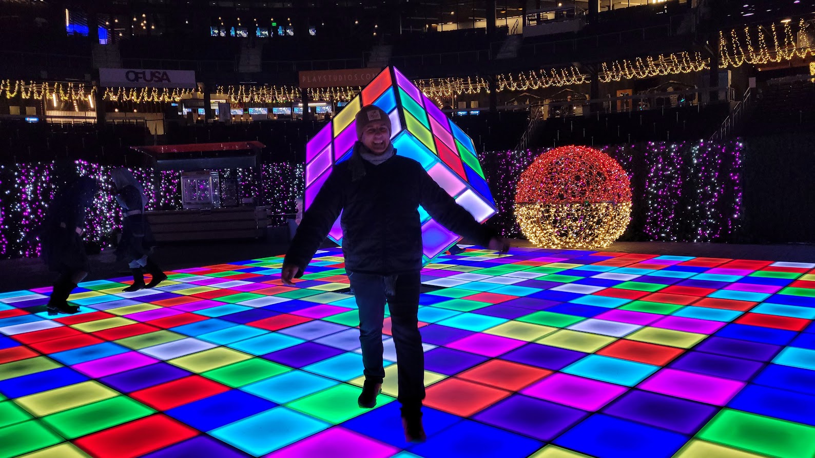 Entertainer E'Stefano DiSanto, whom we recently covered here, accompanied me to the sneak peek. The hard-working showman was naturally drawn to the attraction's dance floor. A little bit of Rubik's Cube with a whole lotta SATURDAY NIGHT FEVER, this spot is perfect for selfies...or next year's Christmas Card photograph.