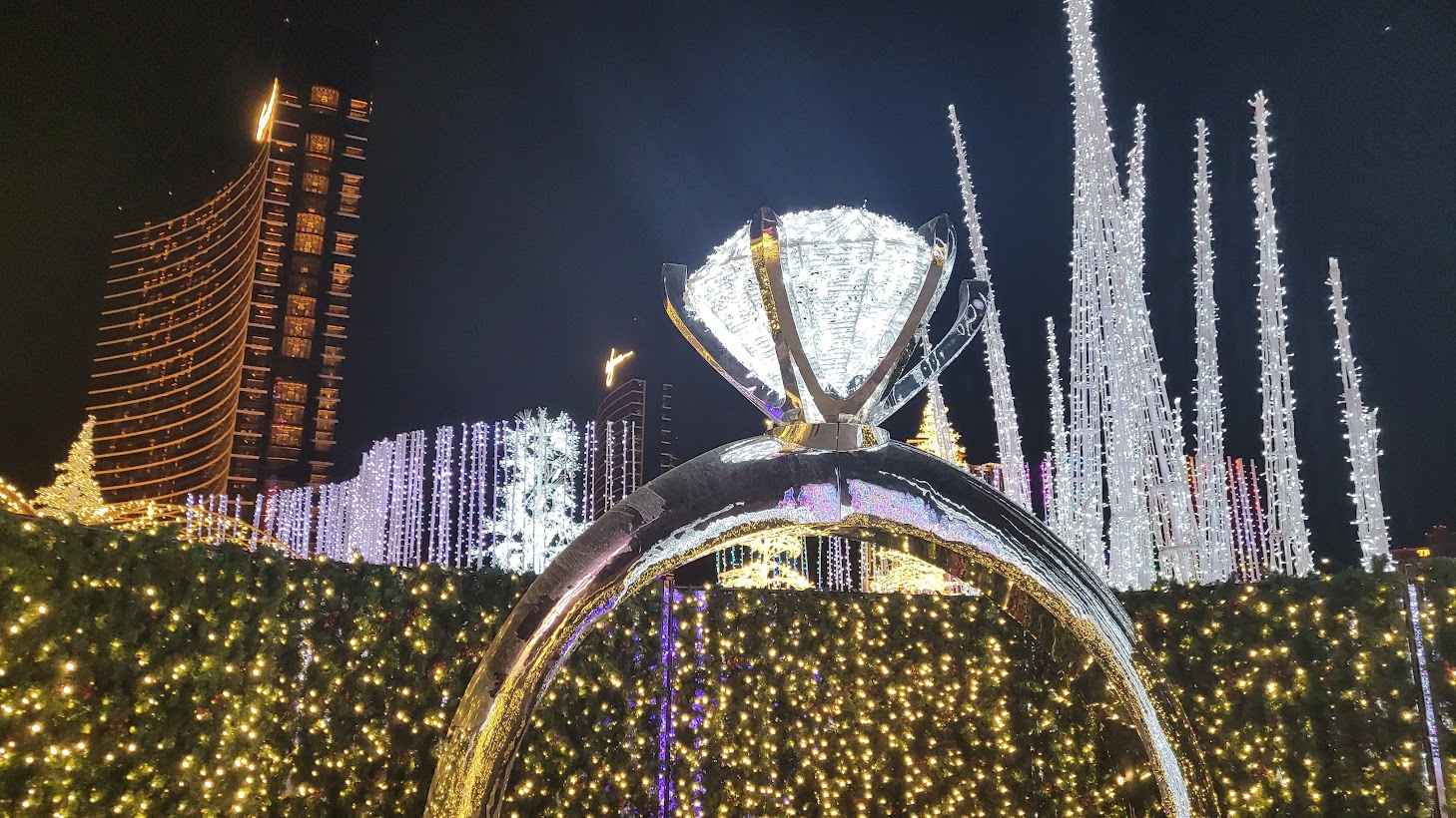 A number of Vegas performers can be spotted at ENCHANT Resorts World. Outrageous aerialist Brandon Pereyda of ZUMANITY leads the charge, putting a distinctively "Vegas" spin on the entertainment offerings. Grammy-nominated singer/songwriter/choreographer David Nicoll (Chippendales, Backstreet Boys) will spread holiday cheer by the sleighful. The opening ceremony was graced by the heavenly vocals of Sophia Monica.
