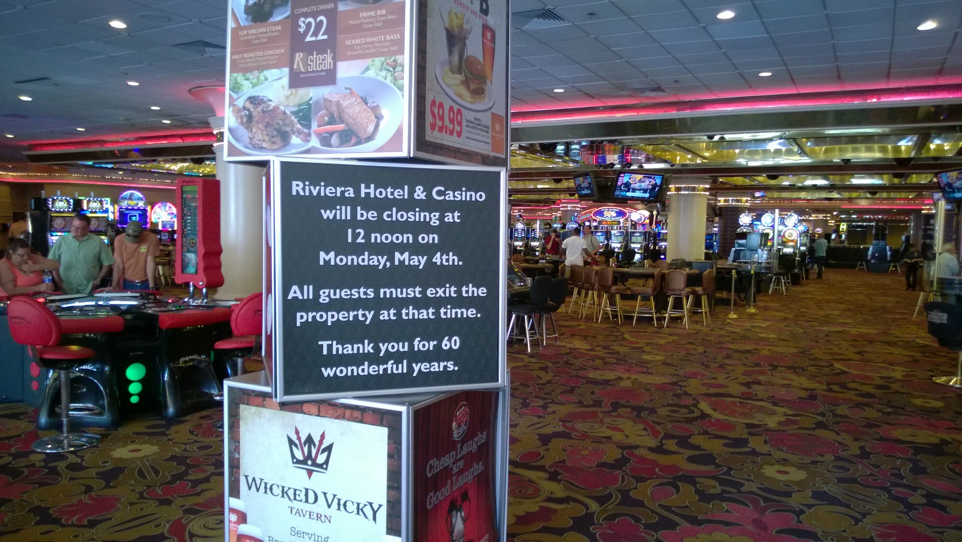 Riviera Hotel Casino shuttered permanently on May 4th, 2015. This writer checked in the evening before and spent one final night in the historic resort. You can read about that by heading here.
