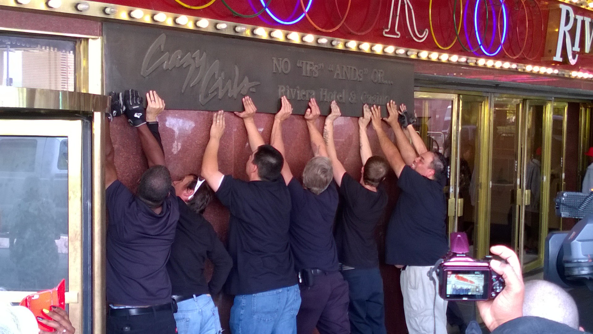 Removal of the famed CRAZY GIRLS bronze sculpture was especially gripping.