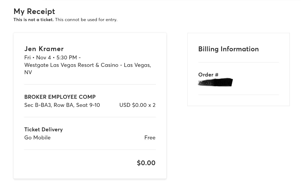 That's well and good for one-off events, but what about recurring resident shows? "That's just them fucking people, excuse my language. And since they have such a good domain name, they rank high in Google, and people who don't know better end up getting ripped off." "They actually used to bring us tickets. We would sell them at either face value or 10% off. So at least they wouldn't be losing everything on the ticket." I asked if he had any knowledge of them listing shows for which they had not yet obtained seats. The seller was aware of a particular production in which this company would offer the same seats/rows for every performance. "I don't know if they buy the tickets ahead of time. This is just me speculating. My guess is that (name redacted) box office sets those aside for him to sell, and when he sells them he pays. I think it would be too risky to purchase tickets to every performance. And the thing is, even if he's not expecting to sell, just having them on his website helps his search engine optimization to get higher in Google." I had a VEGAS411 associate post as a customer for the same ticket reseller. We purchased two seats for the November 4th performance of MAGIC OF JEN KRAMER at Westgate Las Vegas. We were charged $60 each (plus fees/taxes) for two balcony seats. A quick trip to the official Ticketmaster listing shows that, as of this writing, there are over two dozen balcony seats available for the November 4th performance, all priced at $19.99 plus fees/taxes. So, they sold us readily-available tickets at three times their face value. Now....remember this disclaimer?