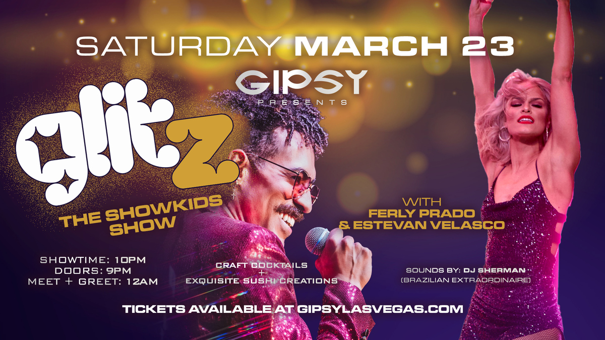"GLITZ intertwines the legends of Las Vegas with the dynamism of today's Strip performers. Doors open at 9 pm, with the show starting at 10 PM, followed by a meet and greet at midnight. Enjoy an evening filled with craft cocktails, exquisite sushi, and the vibrant beats of DJ Sherman, the Brazilian Extraordinaire. Experience the heart of Vegas's past and present at GLITZ, where history meets today's talent in a night you won't forget."