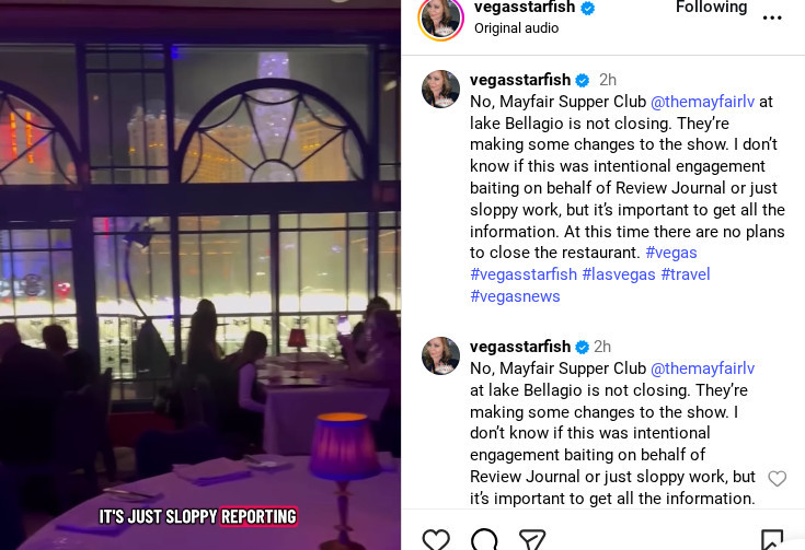 The confusion stemmed from an announcement by John Katsilometes of the Las Vegas Review-Journal (above), which led many to believe that the entire business was shuttering. In reality, the live production that takes place within the dining room is being replaced by another, causing for a pause in entertainment.