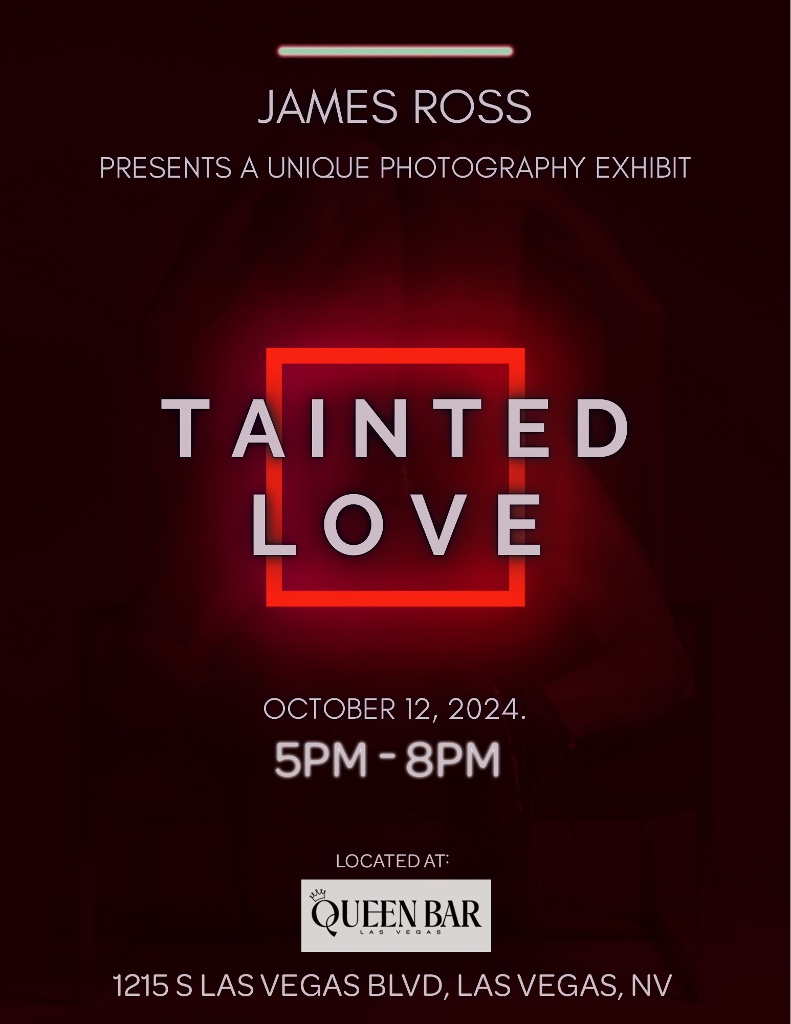 Photographer James Ross presents TAINTED LOVE, a unique and provocative art exhibit. Scheduled for October 12th between 5 pm and 6 pm, the showing will take place at QUEEN BAR at 1215 Las Vegas Boulevard. The LGBTQ+ QUEEN BAR just celebrated one year of operations.