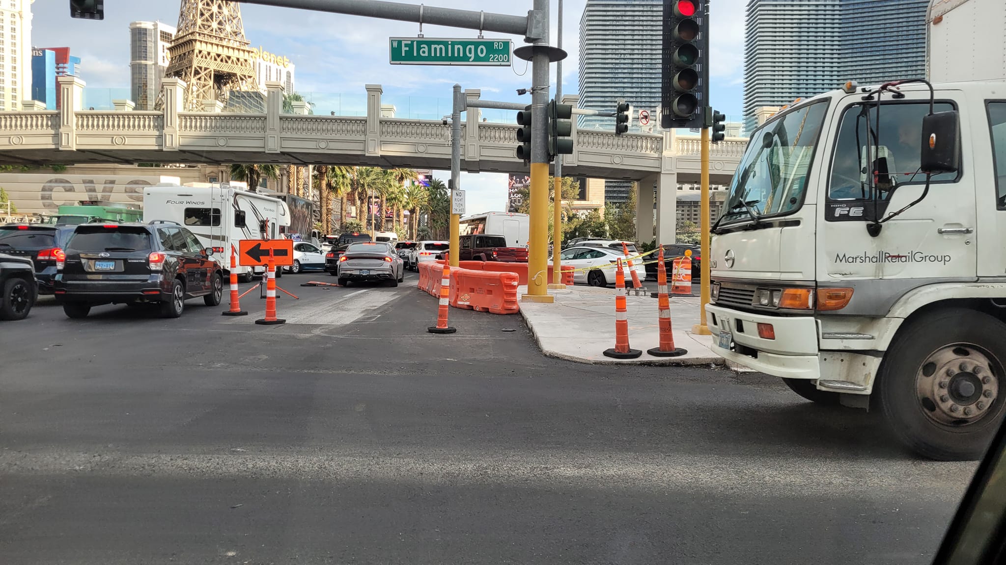 Harmon Avenue, Paradise Road, Flamingo Avenue, Spring Mountain Road, Koval Lane, Charleston Avenue, Sahara Avenue, and Las Vegas Boulevard itself...all are under some form of closure. The same with nearly every road throughout the Arts District and Downtown, including the entire Fremont Street area.