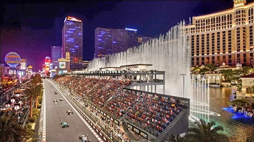 Above is a graph of the F1 race course. Grandstands are being constructed along the "track", which spans the Strip from Treasure Island to Cosmopolitan, circles behind Planet Hollywood down Harmon Avenue, then heads south around the new SPHERE. Along the way, grandstands are being constructed that will house thousands of paying spectators.