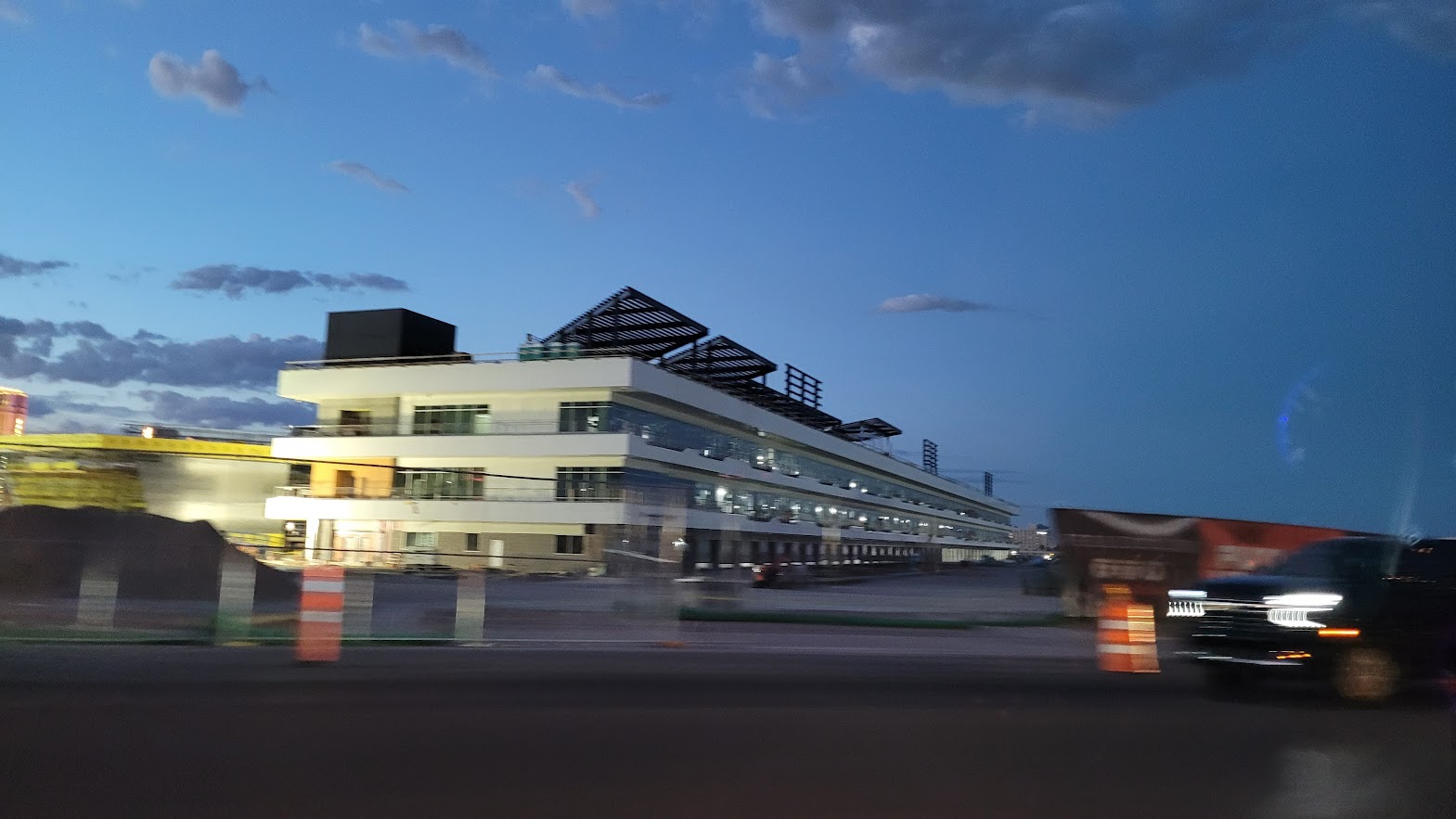 This monstrosity is the new United States headquarters for Formula One. Spanning 39 acres, the four-story building and grounds seemingly rose overnight. It's located at the corner of Harmon Avenue and Koval Lane near TopGolf. It's a permanent structure with over 300,000 square feet of space that includes offices, viewing platforms, and of course...luxury suites for the very wealthy."Commercial spaces have jacked up the rent on so many businesses that they've been forced to move or close and there are gonna be a lot of empty spaces after F1." #VegasGreed - Don B., Vegas entertainer