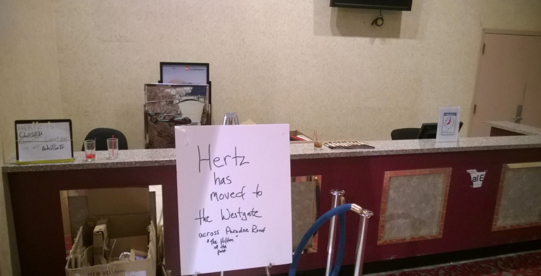Anyone hoping for a shoeshine would be out of luck, as that vendor had already arranged a move to The D Hotel on Fremont Street. The same was true for a Hertz Car Rental counter, which had relocated to Westgate Las Vegas two blocks away.