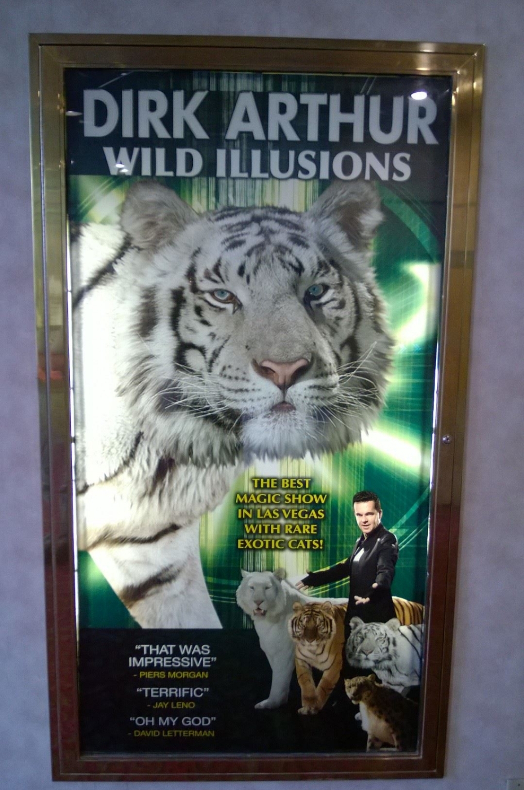 Next, we headed to the third floor Starlite Theater for the final performance of Dirk Arthur's WILD ILLUSIONS. The controversial magician, who worked with large wildcats, passed away under mysterious circumstances last October. We told you about that in this article, along with Arthur's peculiar links to current headliner Jay Owenhouse.