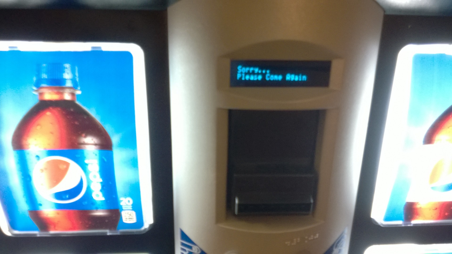 Our room was clean, comfortable, and perfectly fine, despite its doomed status. On the nightstand was a letter announcing the hotel's closure the next morning, with instructions to check out by 11 am. In the corridor, a vending machine made us aware that it had already dispensed its final soda, despite saying "please come again".