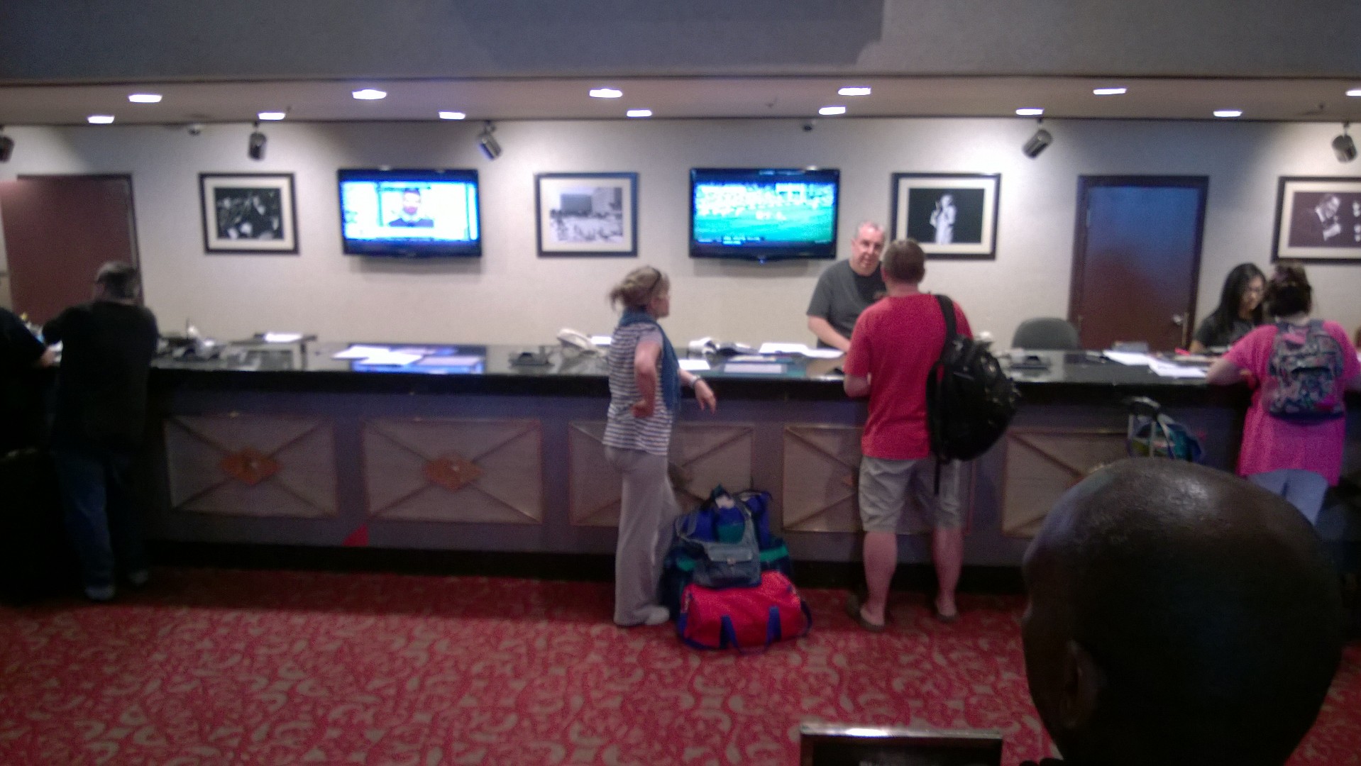 Check-in was smooth and efficient. We were told that the bell desk was still in operation and would remain so until the next morning, although luggage could not be stored after checkout. We were assigned to room #5216 in one of the southeast towers. The line to elevators was bustling, as it seemed that many others had decided to stay one final night in the hotel as well.