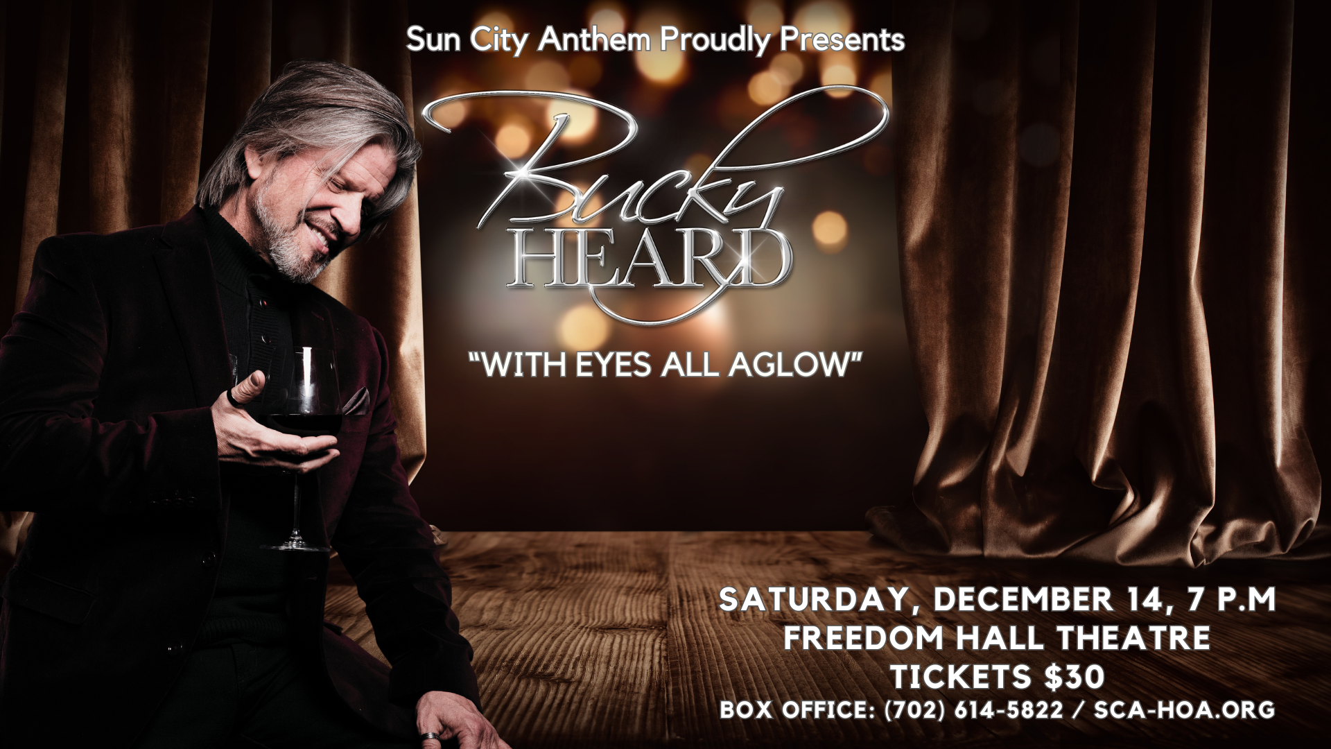 You may know him as half of The Righteous Brothers, but Bucky Heard is a powerful, popular recording artist in his own right. The dazzling vocalist presents WITH ALL EYES AGLOW at Sun City Anthem's Freedom Hall on Saturday, December 14th. Bucky will reteam with his friend, thrilling guitarist John Wedemeyer (The Beach Boys), for this very special holiday show. Tickets here.