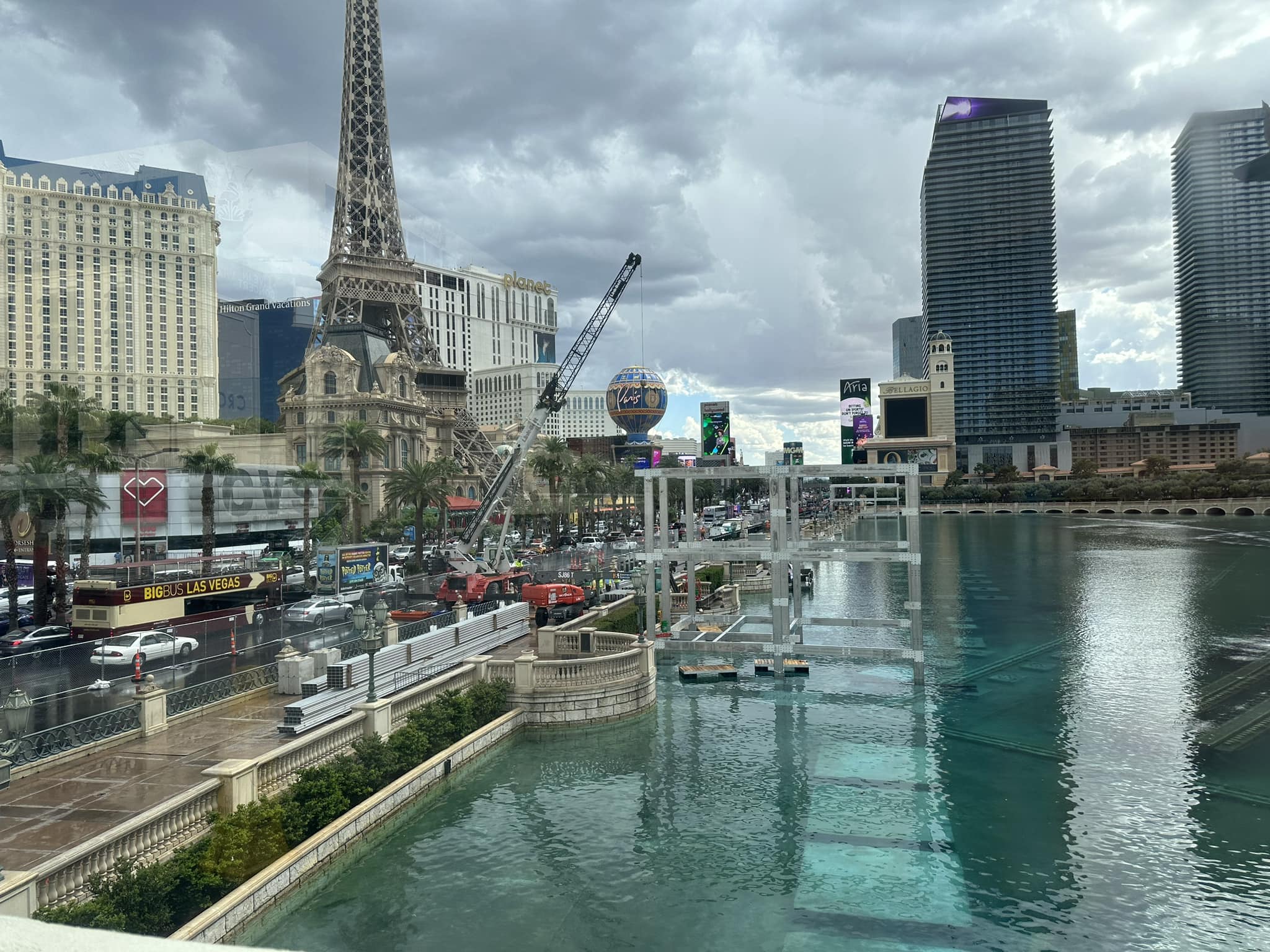 "Here’s what the number one tourist attraction in Las Vegas currently looks like. The one that was available free to anyone - monied or not. All of the beautiful shade trees that lined the most iconic block of the strip have been cut down and Bellagio is erecting these massive iron grandstand supports IN the fountain. They will soon be suspending the fountains’ operation. All for a f’ing car race. All that’s wrong with Vegas in one photo."