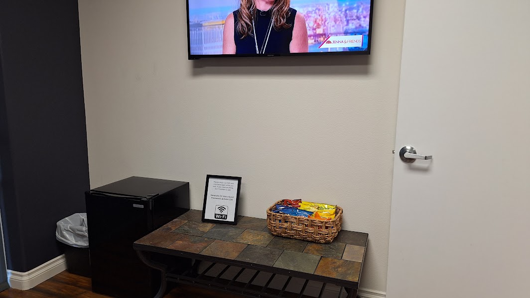 Services are by appointment, generally taking two and a half hours or less. A spacious waiting area provides comfortable seating, free wi-fi, coffee, bottled and canned drinks/water, and snacks.