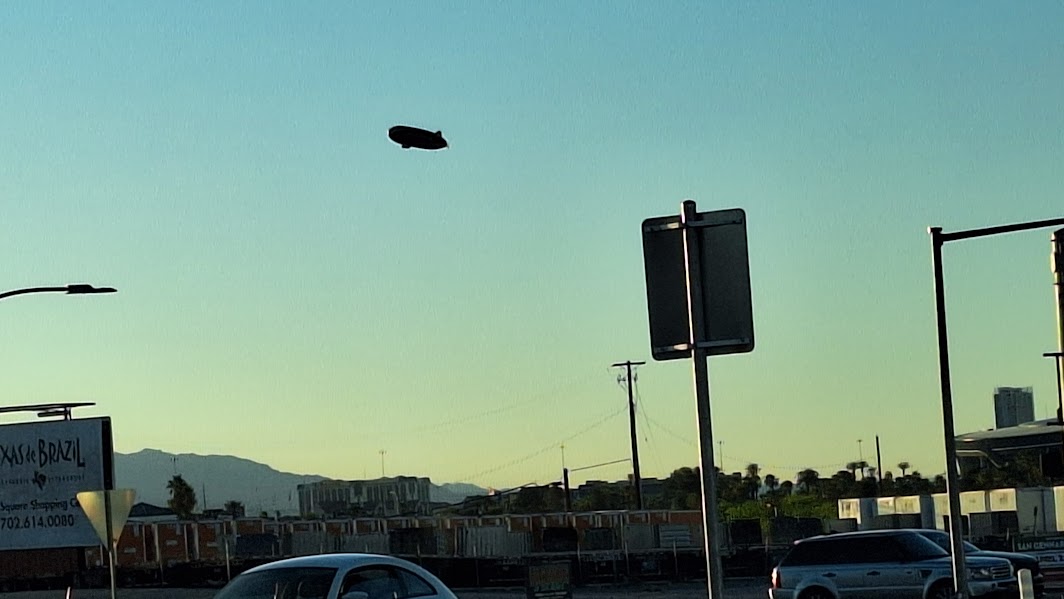It's common for the famed Goodyear blimp to fly over national sporting events, providing excitement with aerial camera views. But it's a rare sight for the residents of Las Vegas.