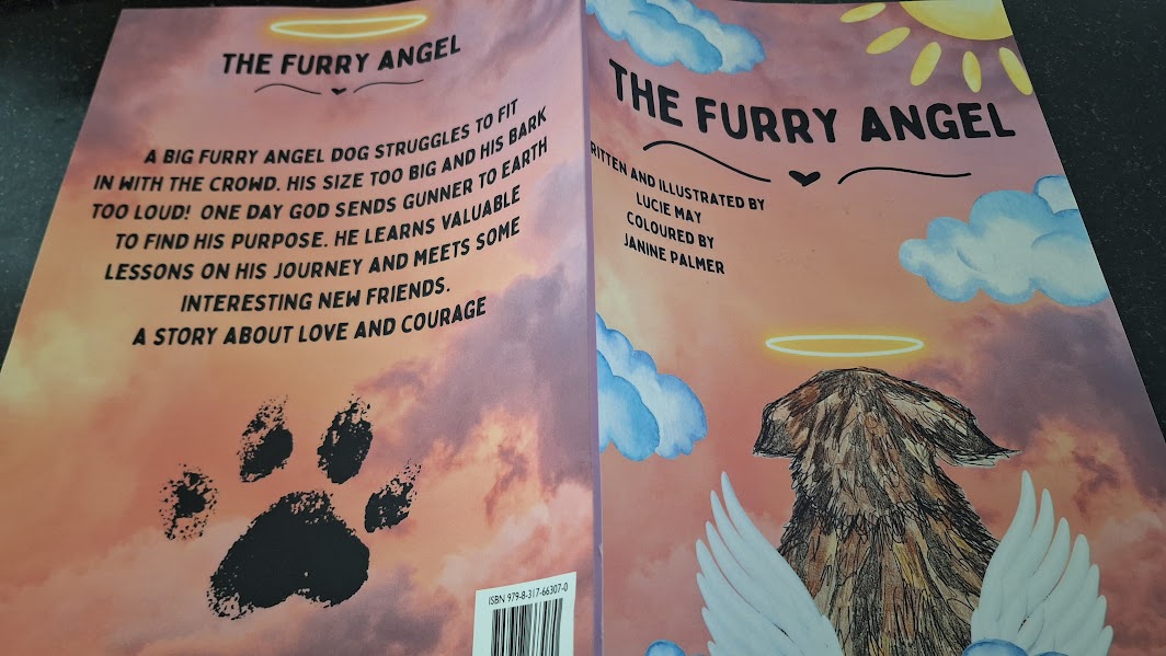 VEGAS 411 was invited to lunch by Gunner May, a handsome eleven-year-old rescue who's the subject of a new children's book. THE FURRY ANGEL just hit Barnes & Noble's online store. It's the tale of an oversized canine angel sent to Earth for a few lessons and to make new friends. The book is written and illustrated by his mother, with colors from his grandmom, Janine Palmer.
