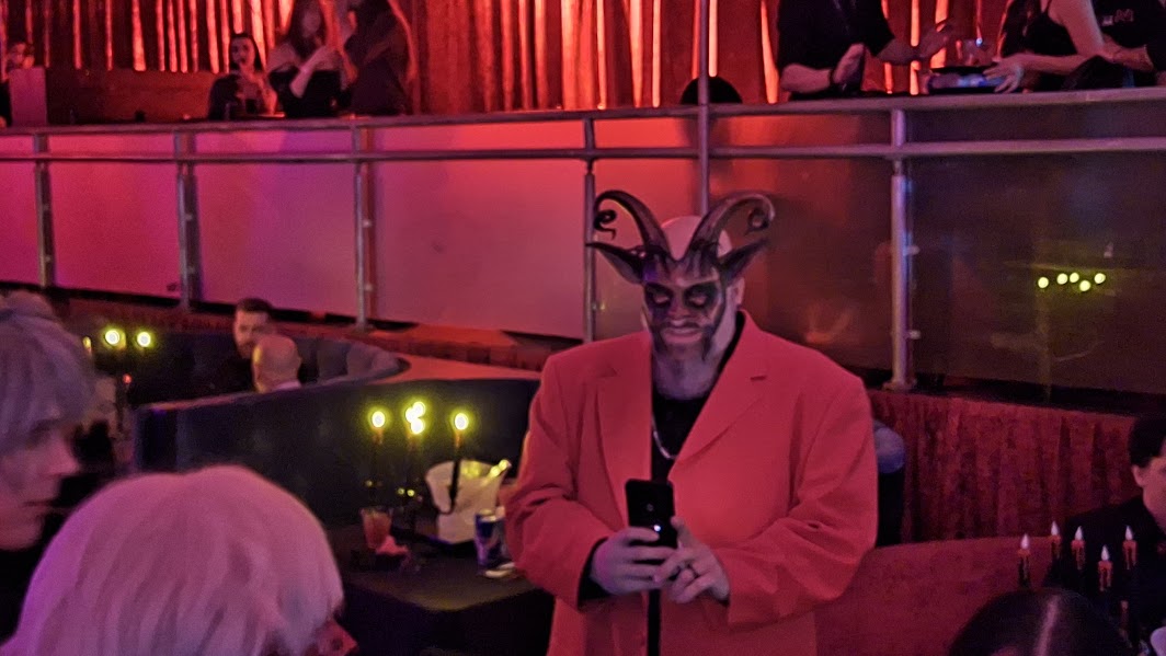 Live entertainment included a show by Satanic consultant John Shaw (below) as “Court Magician”. Fans know Shaw for his eerie performances at Zak Bagans’ Haunted Museum, Late Night Magic, and television appearances on The Late Show with James Corden, Pawn Stars, Ghost Adventures, and many more.