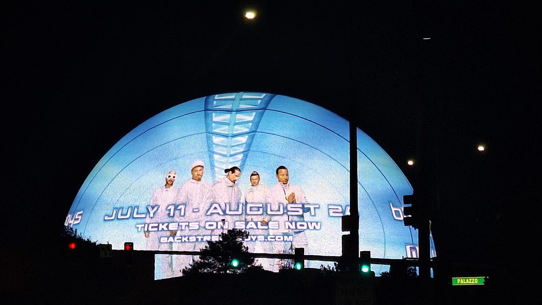 ATOMIC SALOON SHOW is located above the atrium waterfall at Venetian Palazzo Resort. On the way in, we caught a cool glimpse of the SPHERE, which was plugging the upcoming Backstreet Boys residency. SPHERE also made a big announcement with The Wizard of Oz, which begins August 28th (get tickets here).