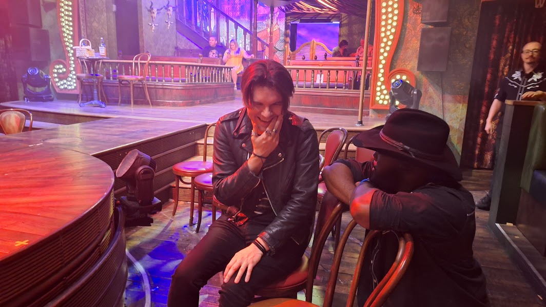 Even so, we at VEGAS 411 ducked our heads out of hiding to hit a couple of fun spots. Our first was unexpected, as we were scheduled to attend the premiere of Caleb Alexander's new MAGIC TAKEOVER at The Griffin. Alas, it was postponed until July 9th due to protests. So Alexander and fellow magician Hollie England (Late Night Magic) joined us for a trip to the Atomic Saloon Show.