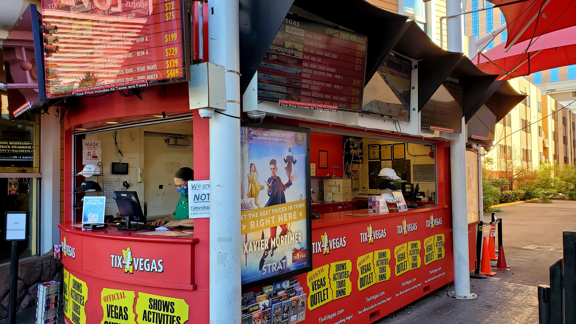 A Tix4Vegas booth next to Casino Royale was one of the first to reopen