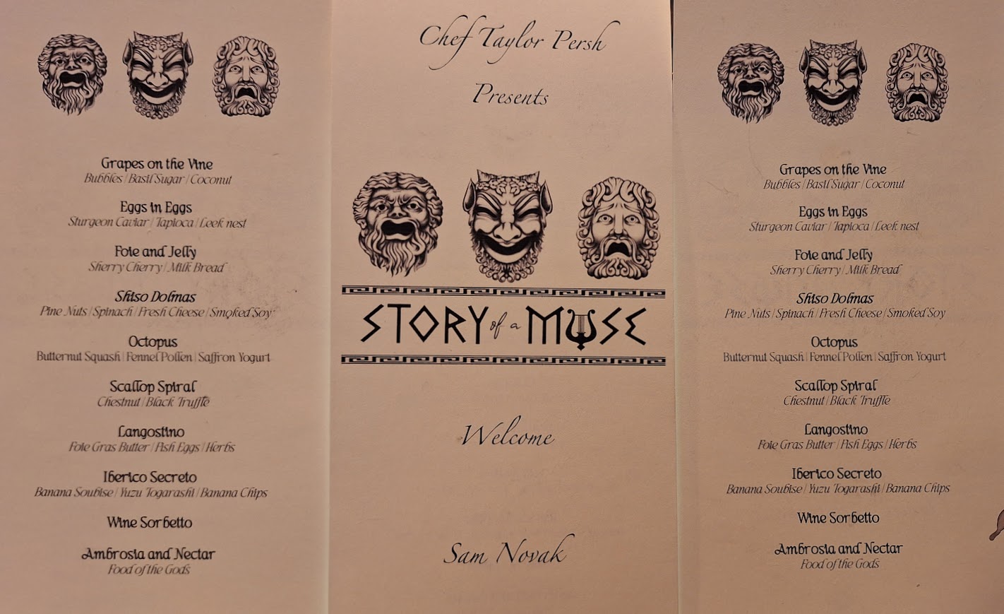 "Story of a Muse is about rebirth and the importance of community. We want our guests to have fun, meet new people, and challenge themselves." - Chef Taylor Persh