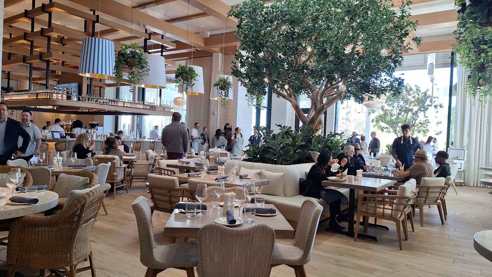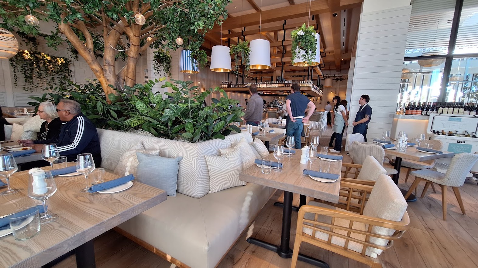 Once inside, you'll be charmed by the soothing color palette, simple designs, and cheery atmosphere. Floor-to-ceiling windows, natural lighting, and a large central tree enhance the restaurant's commitment to delivering "sunshine all year long".
