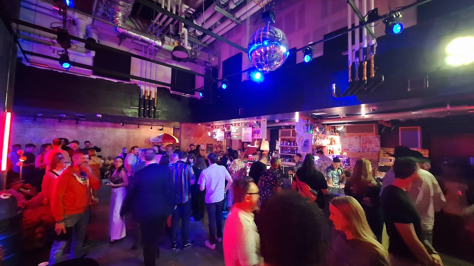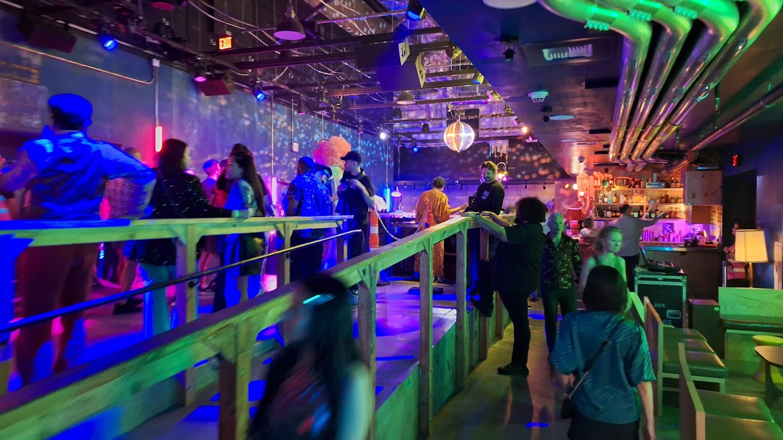 "Head upstairs to the Glitterloft, a space inspired by early-1970s rent-parties and David Mancuso’s legendary Loft. When you go to a party, it’s all about no-fuss fun. Black solo cups. Specials on the board. Bottles and cans of beer.